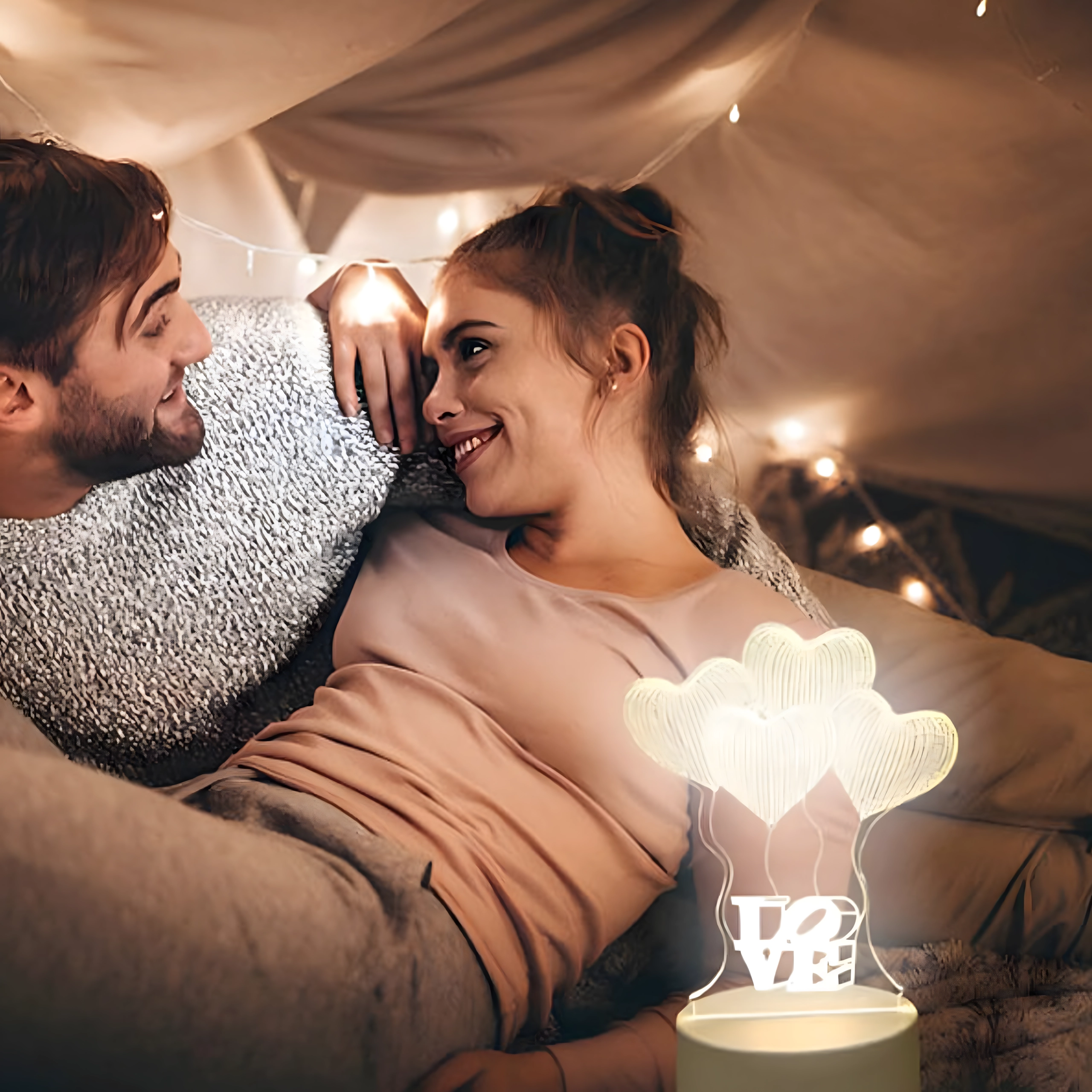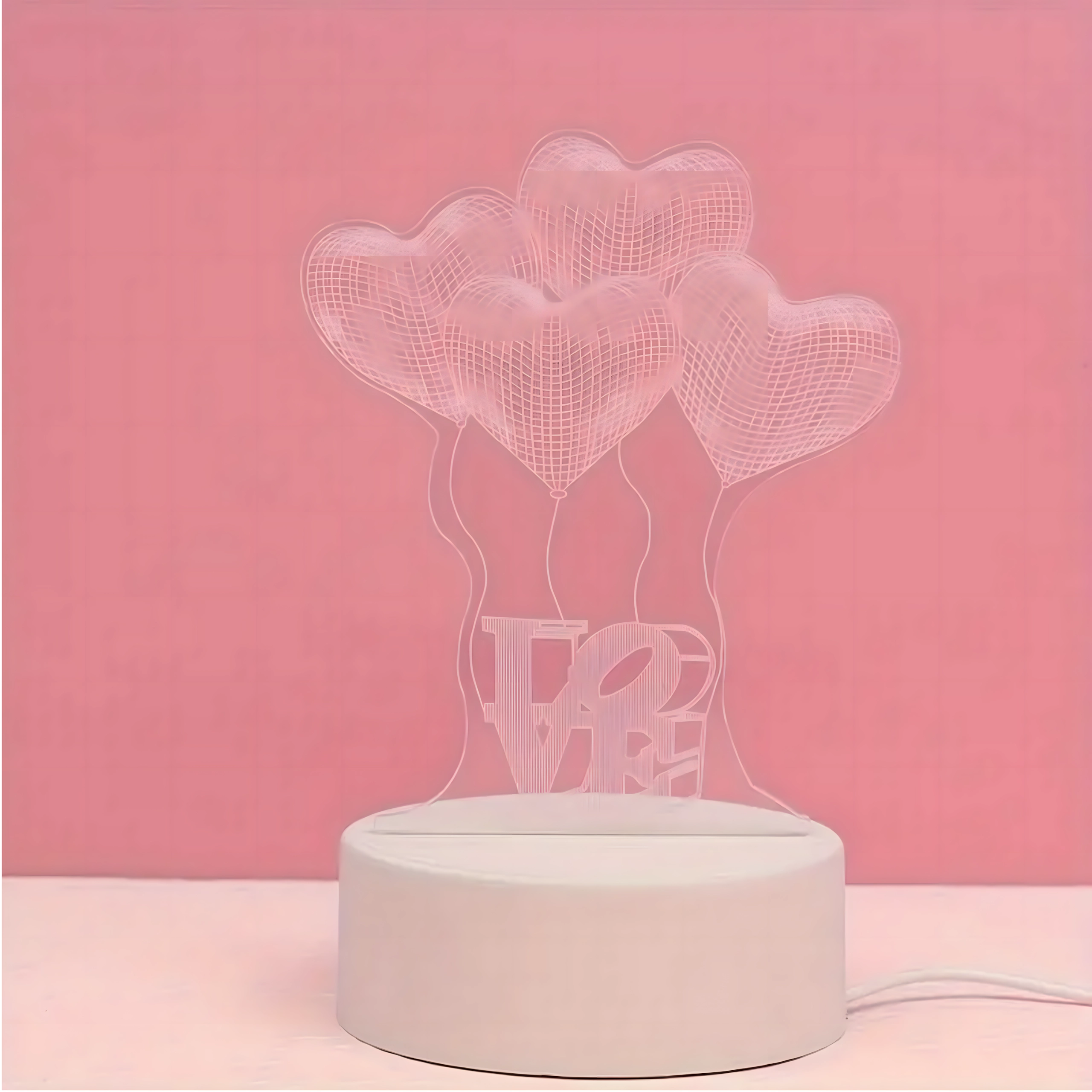 Romantična nočna LED svetilka z motivom LOVE in srčki ustvarja izrazito 3D iluzijo na prosojnem akrilnem panelu. Odlična kot dekorativna svetilka za spalnico, otroško sobo ali kot izvirno darilo. Preprosto napajanje prek USB, topla prijetna svetloba in kompaktna zasnova za vsakodnevno udobje.