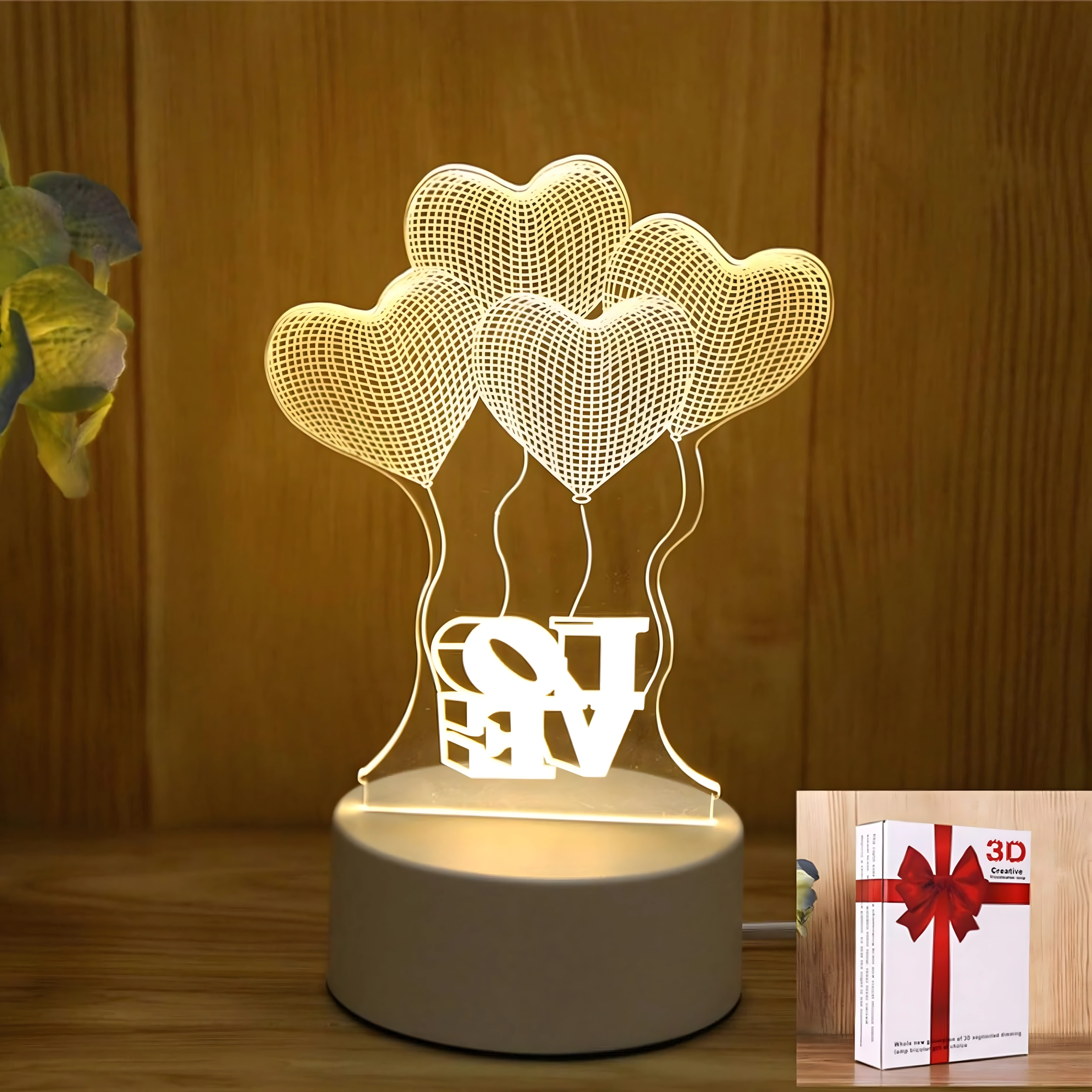 Ta stilska LED svetilka z motivom srčkov in napisom LOVE bo vsak prostor spremenila v prijeten kotiček. Akrilni panel z nežnim graviranjem ob prižigu ustvari realističen 3D učinek, ki navduši tako otroke kot odrasle. Zaradi toplega odtenka svetlobe je idealna kot nočna lučka ob postelji ali razpoloženjska dekoracija.