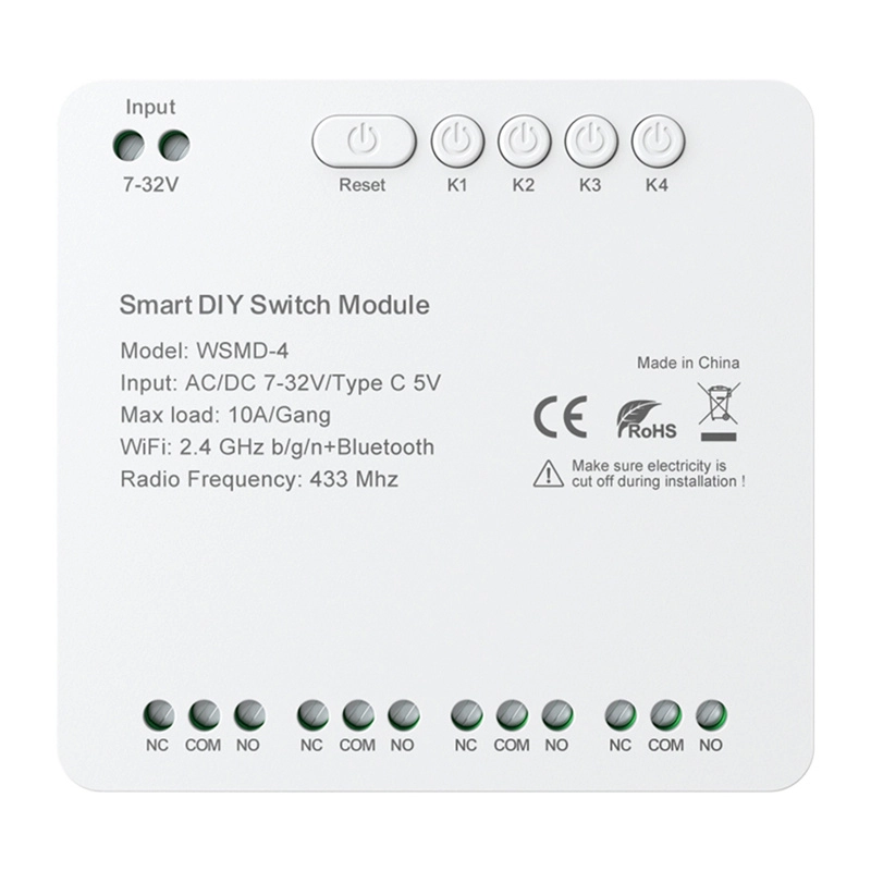 Univerzalni štirikanalni modul AVATTO za mojstre omogoča udobno daljinsko upravljanje luči, vrat, črpalk ali senčil. Ponuja Wi‑Fi 2,4 GHz, rezervo prek Bluetootha, podporo RF 433 MHz, napajanje 7–32 V AC/DC ali 5 V USB‑C ter do 10 A na kanal. Preprosto se nastavi v aplikacijah AVATTO / Tuya Smart / Smart Life in deluje z Amazon Alexa ter Google Assistant.