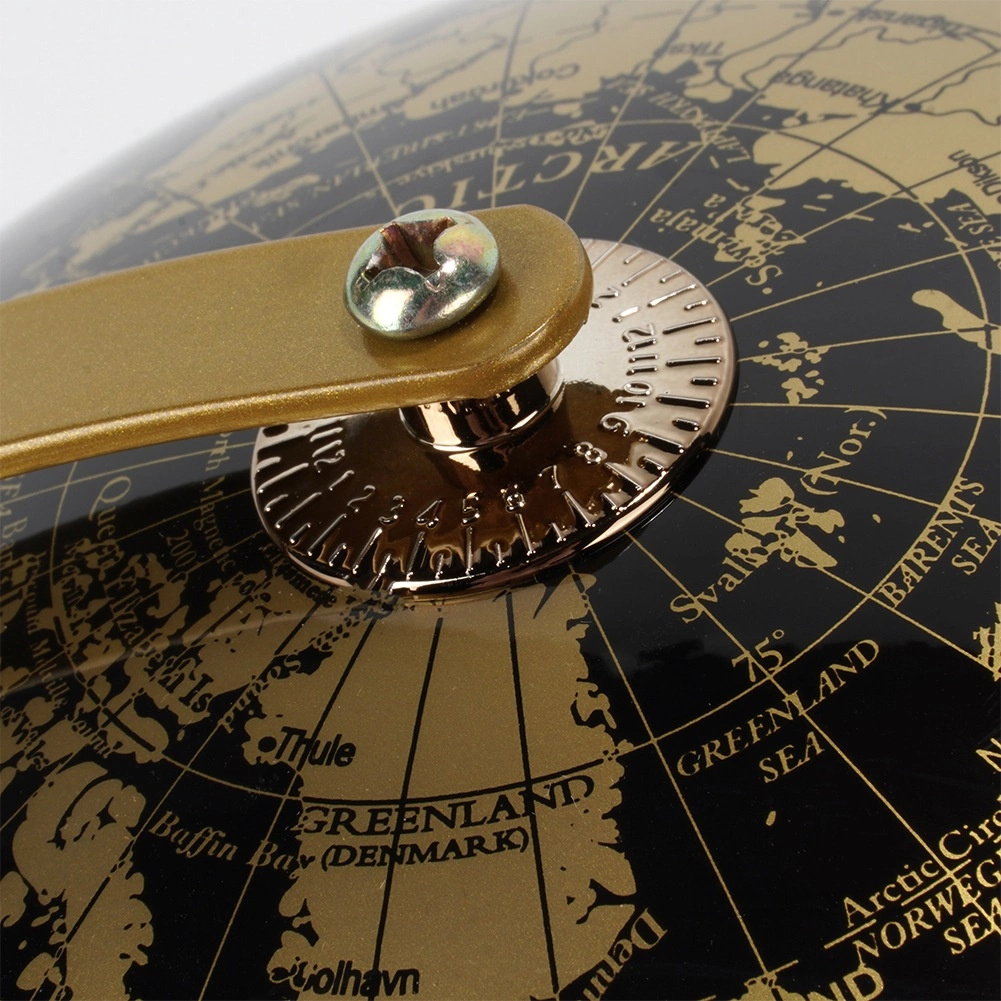Podrobno izdelan globus v črni in zlati barvi ter stabilno kovinsko stojalo vašemu interierju dodata moderen in razkošen pridih.