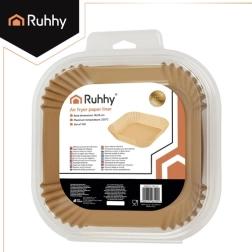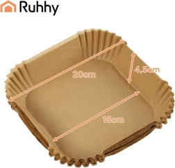 Ohranite svoj cvrtnik na vroči zrak popolnoma čist s papirnatimi vložki RUHHY. Set vsebuje 100 enkratnih vložkov iz silikoniziranega papirja za neprijemljivo peko, z odpornostjo do 230 °C in univerzalno kvadratno obliko 20 × 20 × 4,5 cm (spodnja osnova 16 × 16 cm). Manj čiščenja, več okusa – idealno za pomfri, meso in pecivo.