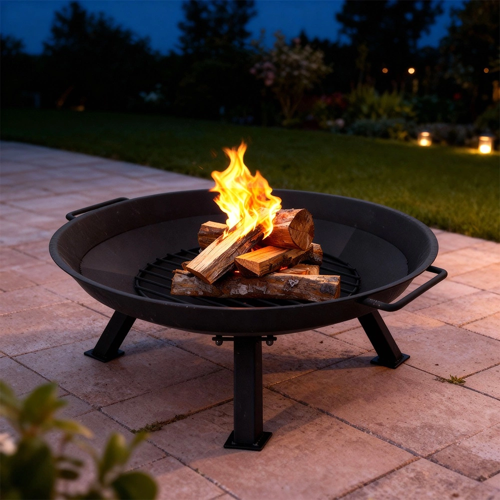 Ustvarite čarobno vzdušje doma z odpornim kovinskim kuriščem s premerom 56 cm. Široka posoda zagotavlja učinkovito kroženje zraka in enakomerno gorenje, medtem ko stabilno podnožje nudi zanesljivost tako na travniku kot na terasi. Dva stranska ročaja olajšata prestavljanje kurišča tja, kjer trenutno potrebujete toplino in udobje.