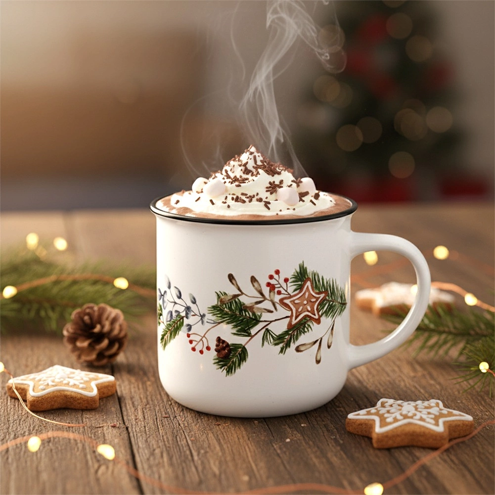 Motiv iglavcev, rdečih jag lic in medenjakove zvezde spremeni vsak požirek v majhen zimski ritual – idealno za sprostitev ob čaju ali vroči čokoladi.