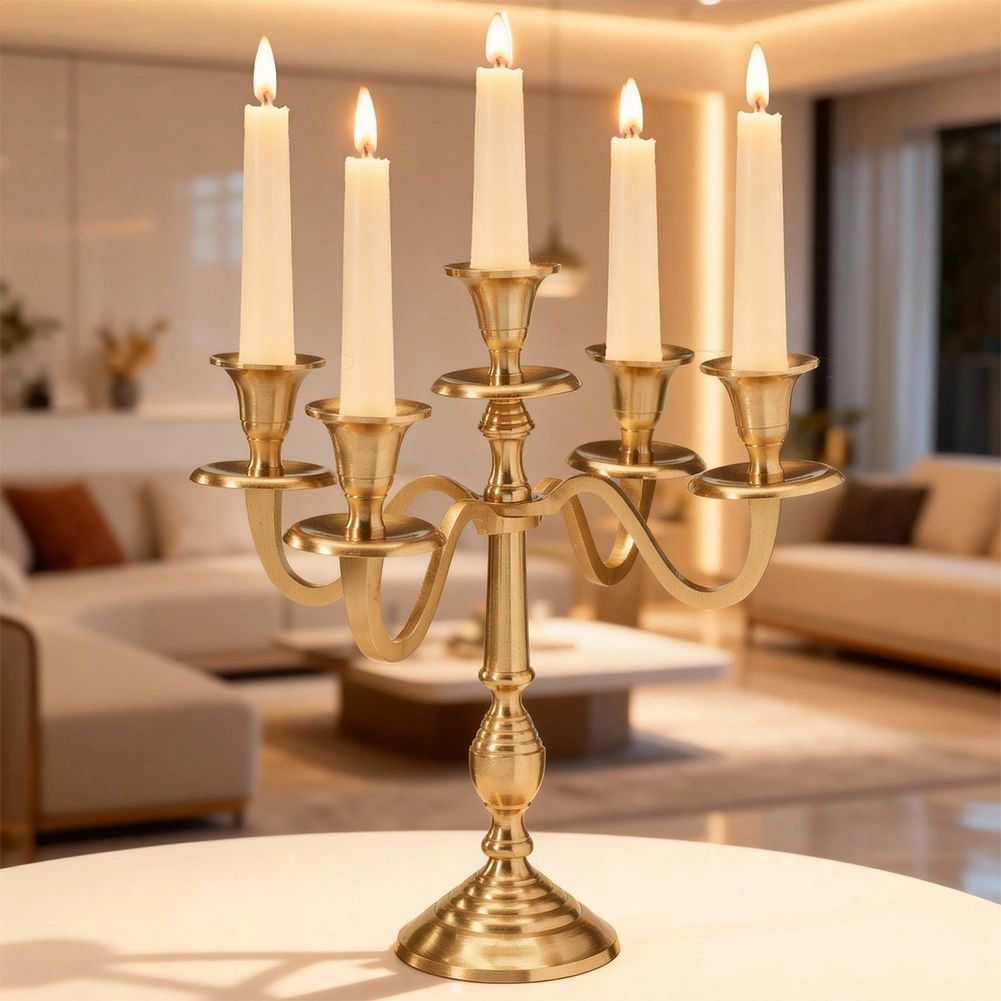 Eleganten zlati kandelaber s petimi kraki in višino 30 cm vašemu interierju doda razkošno vzdušje in ambientalno osvetlitev. Stabilna aluminijasta konstrukcija, sodoben minimalističen dizajn in prostor za pet dolgih sveč ga naredijo stilen osrednji element mize za vsakdan in slavnostne priložnosti.