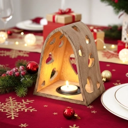 Izrezljana srčka prepuščajo mehko svetlobo in rišejo na stene izrazite ornamente – idealno za prijetne večere.