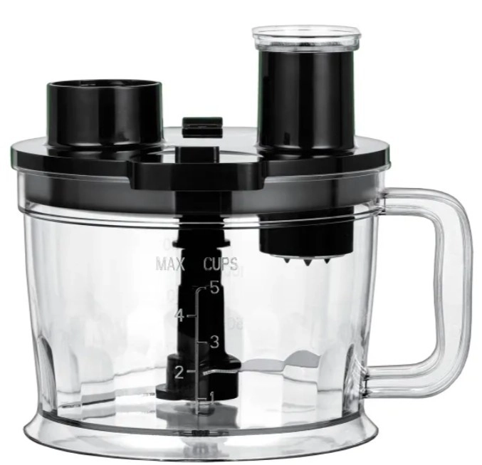 - Nerjaveči palični nastavek, sekljalnik 1,25 l, dvostranski rezalni disk, merilna posoda