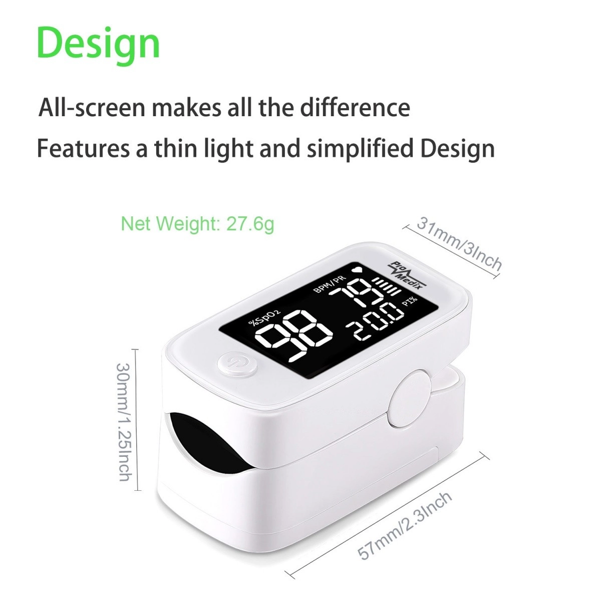 Naprava je uporabna tudi v športni medicini in pri testih zmogljivosti, pri spremljanju bolnikov z anemijo ali v situacijah, ko grozi nezadostna oksigenacija organizma. Kompaktna zasnova omogoča, da je oksimeter vedno pri roki in omogoča hitro preverjanje vrednosti v kateri koli situaciji.