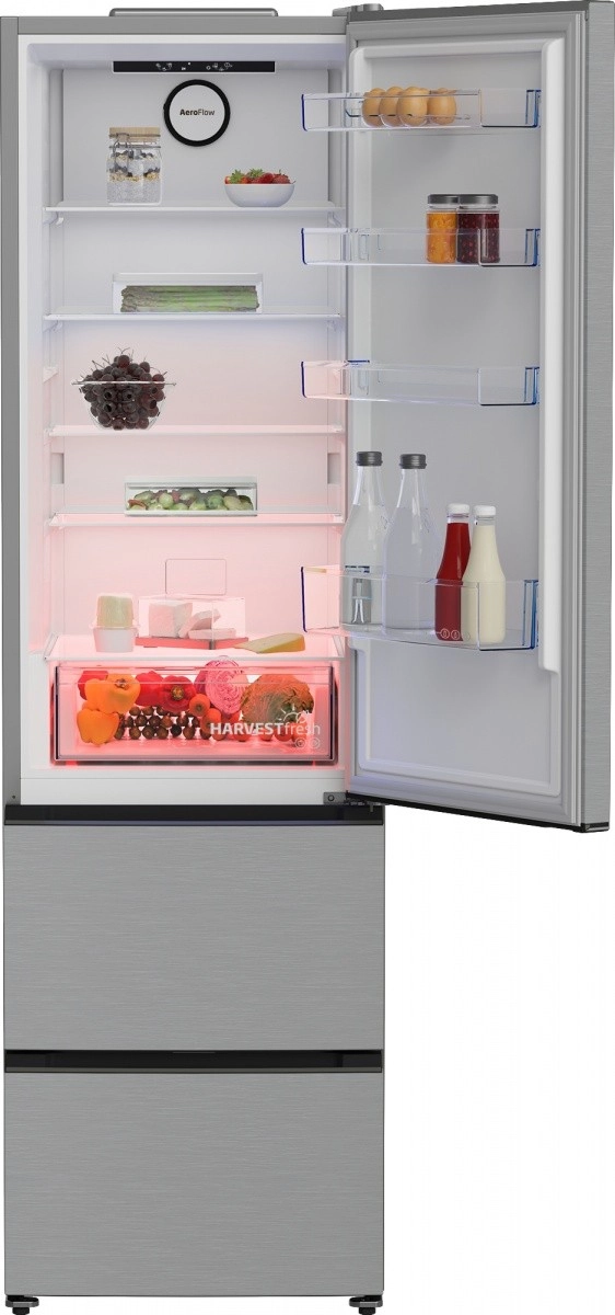 Sodoben večvratni hladilnik z zamrzovalnikom ponuja radodaren shranjevalni prostor, pregledno organizacijo živil in varčno delovanje. Elegantna nerjaveča izvedba se poda v vsako kuhinjo, praktični zamrzovalni predali pa omogočajo lahek dostop do zamrznjenih živil.
