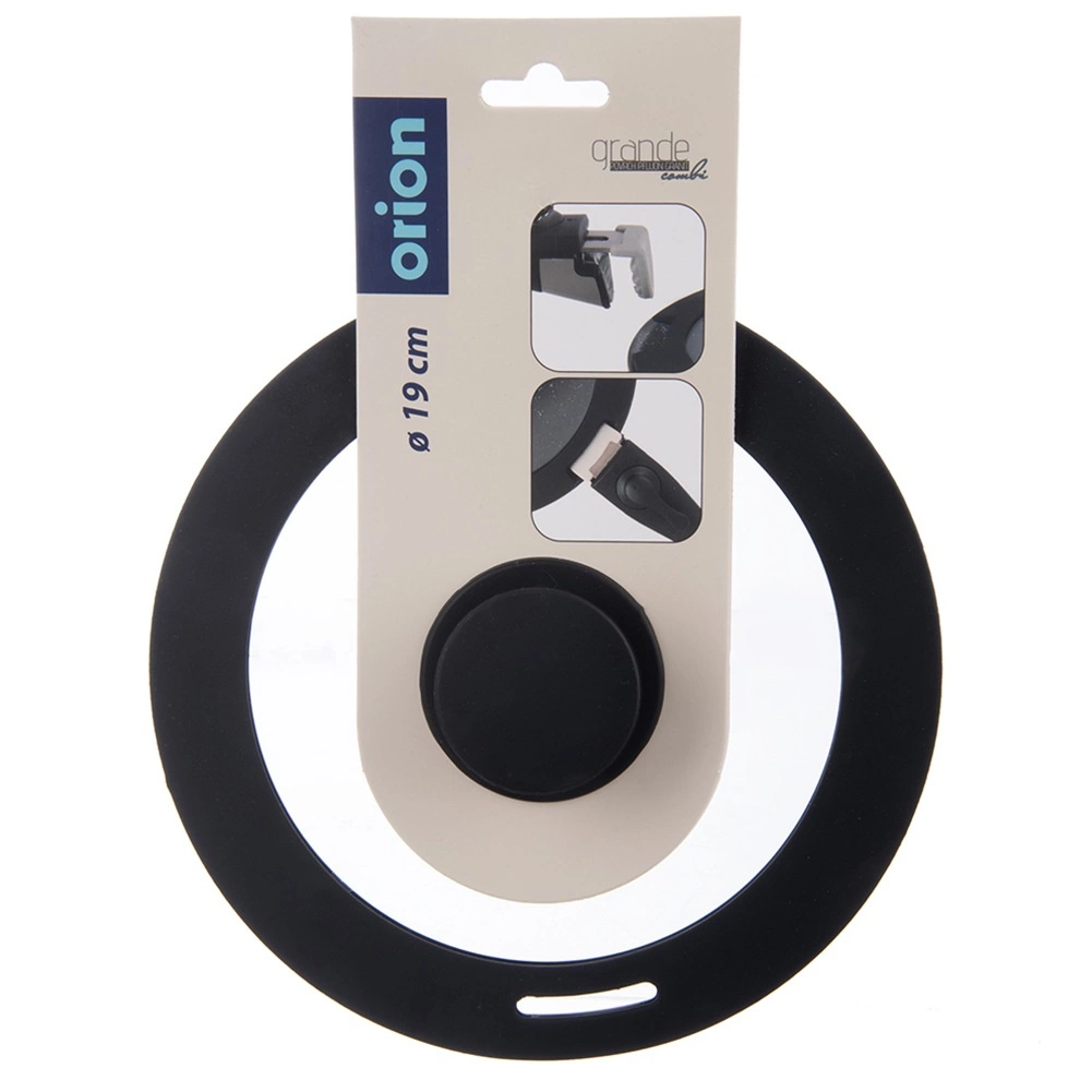 Univerzalen stekleni pokrov z zunanjim premerom 19 cm s silikonskim robom in udobnim ročajem za posode s premerom 18 cm. Izdelan iz borosilikatnega stekla – odporen na toploto in udarce, z režo za odvajanje pare ter izrezom za posode z odstranljivim ročajem. Primeren za pečico do 220 °C in za pomivalni stroj.