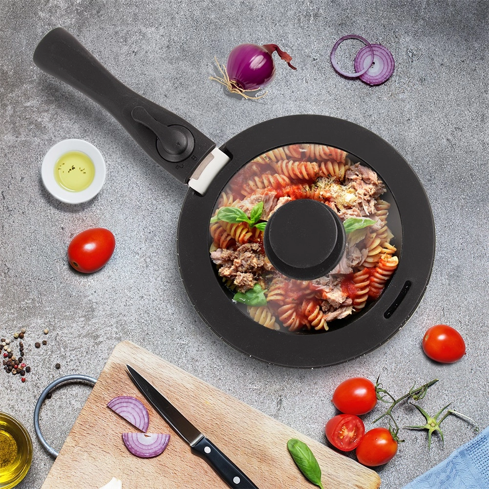 Praktičen in vzdržljiv pokrov za vsakodnevno kuhanje. Kombinacija borosilikatnega stekla in prožnega silikona zagotavlja tesno prileganje, boljši nadzor nad kuhanjem in varno rokovanje. Prosojno steklo omogoča spremljanje priprave jedi brez dvigovanja pokrova.