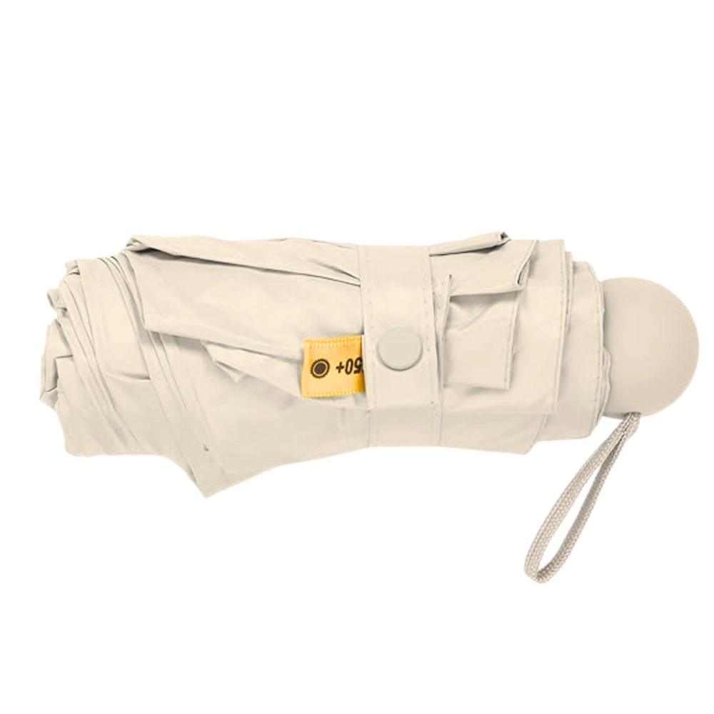 Slogoven bež zložljiv dežnik je idealen spremljevalec za spremenljivo vreme. Zahvaljujoč površinski obdelavi z UPF 50+ učinkovito blokira škodljivo UV-sevanje, zato ščiti ne le v dežju, temveč tudi v močnem soncu. Kompaktne mere in lahka zasnova zagotavljajo, da ga zlahka pospravite v torbico, nahrbtnik ali žep večje jakne.