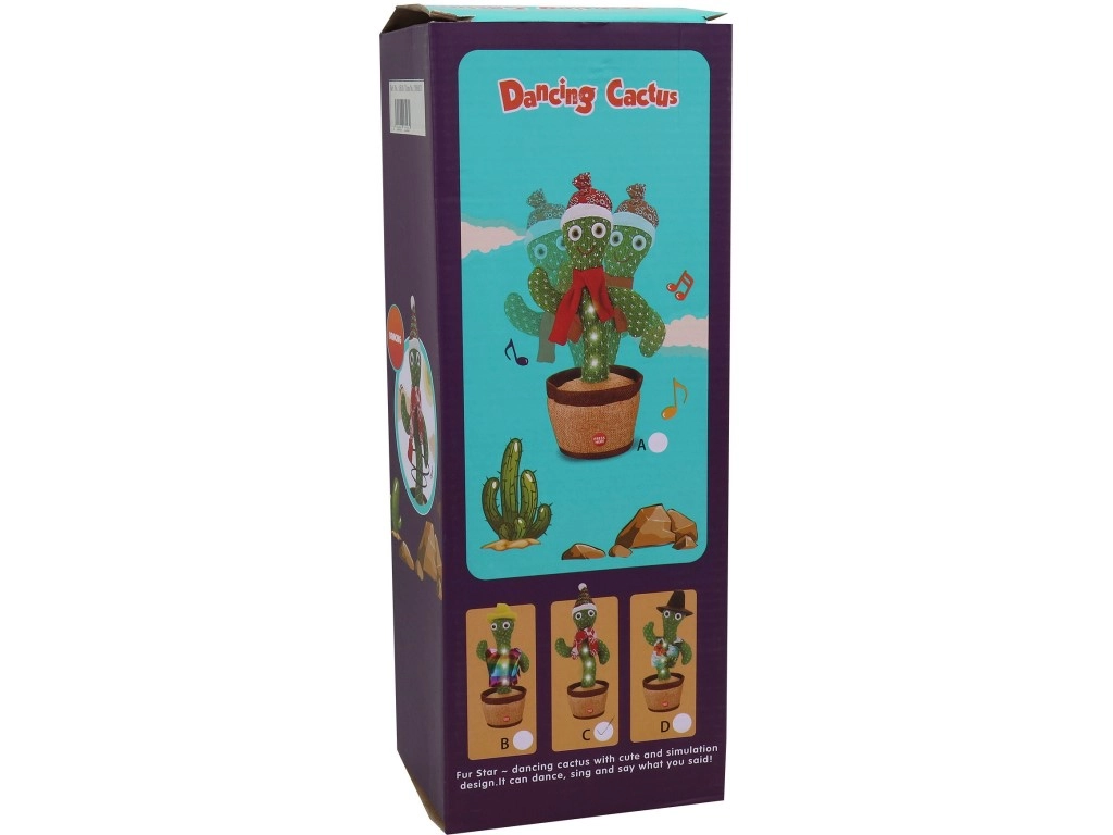 Razvedrite vsak prostor s tem plesočim kaktusom z lučko, ki pleše v ritmu, ponavlja zvoke in glas ter poskrbi za veliko zabave za otroke in odrasle. Dovolj je, da vstavite baterije, preklopite na ON in pritisnete označeno mesto.