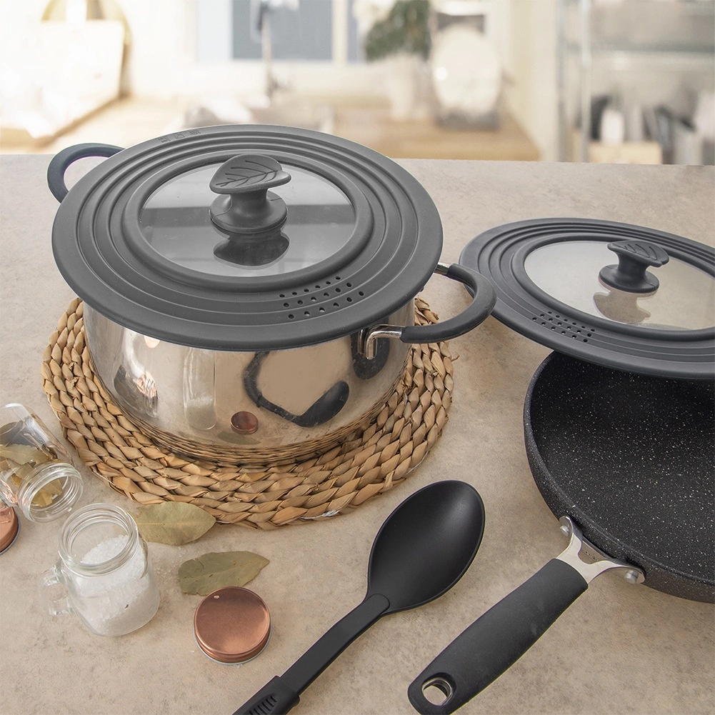 Stopničast silikonski rob zanesljivo sede na treh najpogostejših premerih, zato en pokrov nadomesti tri in prihrani prostor v kuhinji.