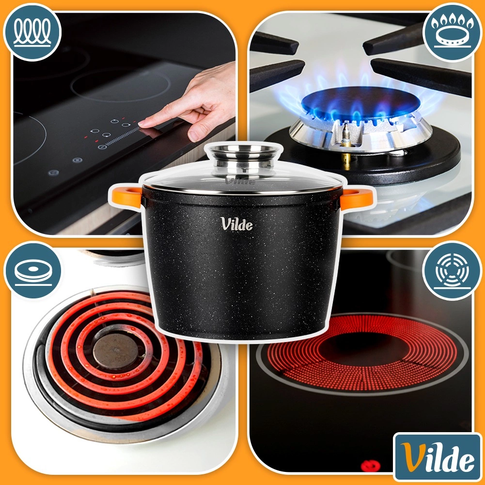 - Združljivost z vsemi kuhalnimi ploščami – plin, elektrika, steklokeramika, indukcija.