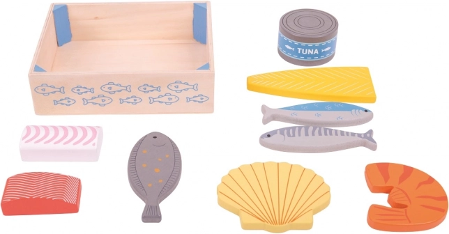 Ta lesena škatla je polna svežih in zdravih rib, kot so losos, tuna v konzervi in kozice. Odličen dodatek k leseni kuhinji za vse male kuharje. Bigjigs Toys lesena hrana spodbuja privlačno učenje o izvoru in pripravi hrane, izboljšuje otroško motoriko in hkrati otroke zabava.