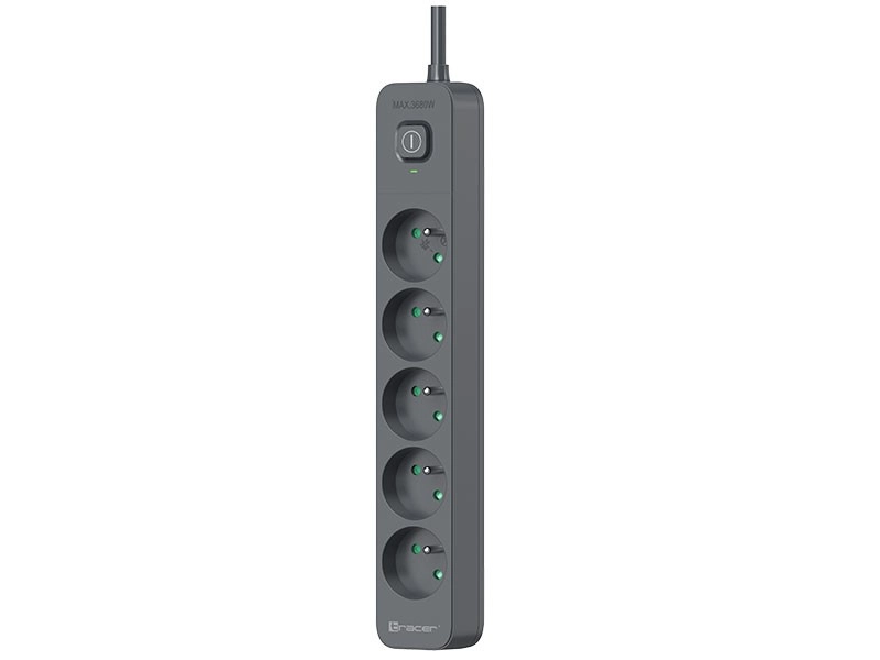 Zanesljiva prenapetostna zaščita za domačo elektroniko. TRACER Power Line+ ponuja 5 ozemljenih vtičnic, kabel 1,8 m, najv. moč 3680 W in samodejni odklopnik z osvetljenim stikalom za enostavno in varno uporabo.