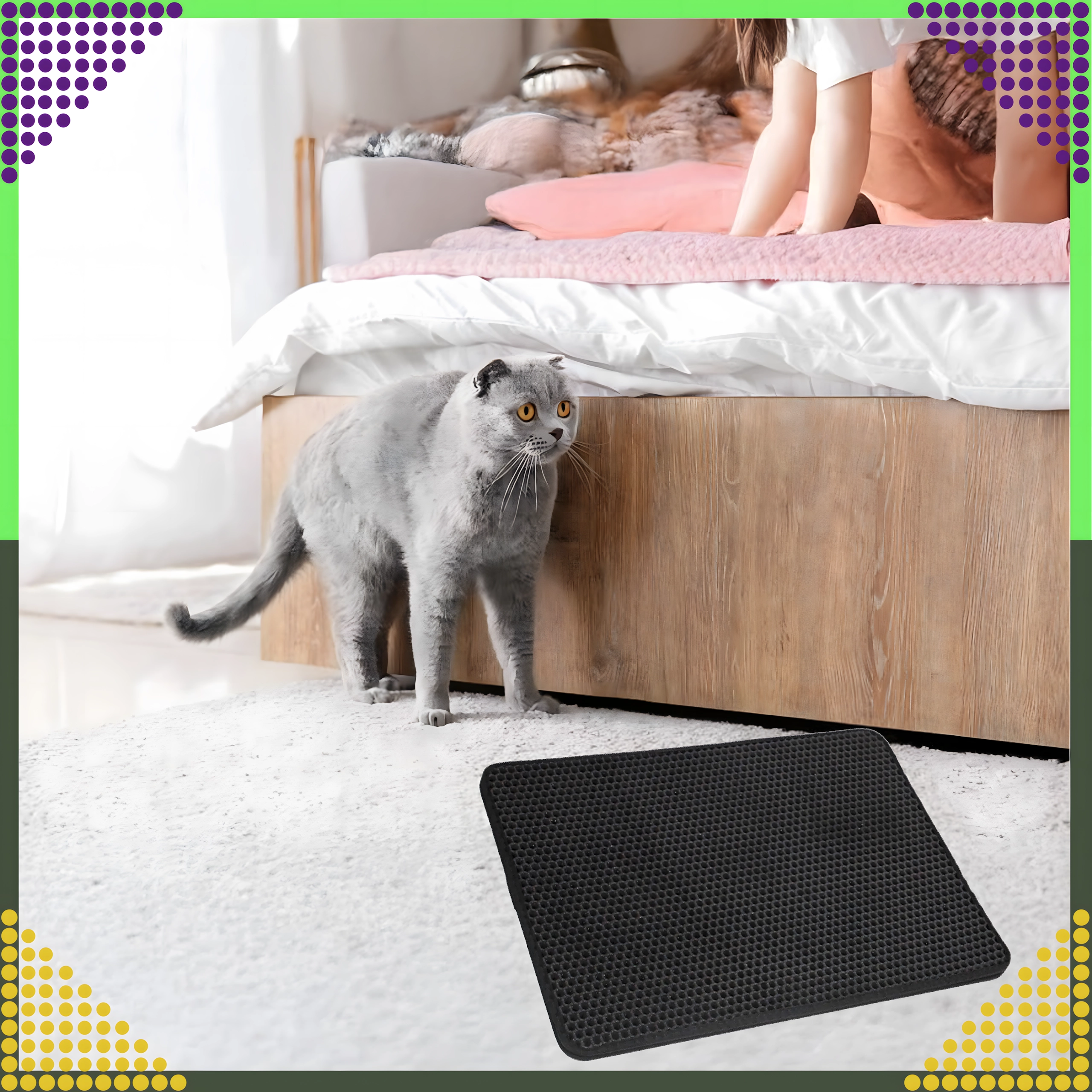 Teksturirana površina je prijetna za mačko, spodnja stran pa preprečuje drsenje, da podloga ostane na mestu.