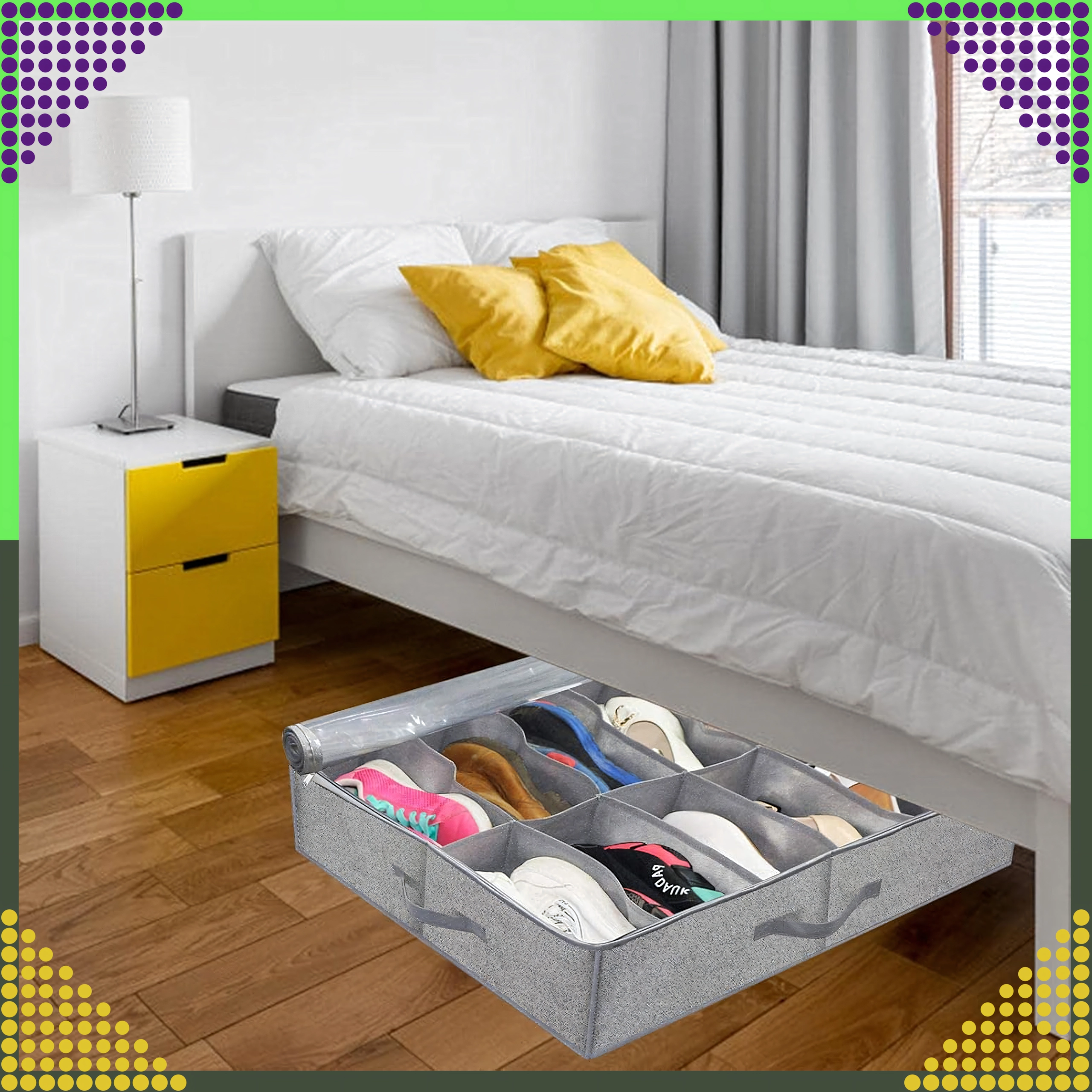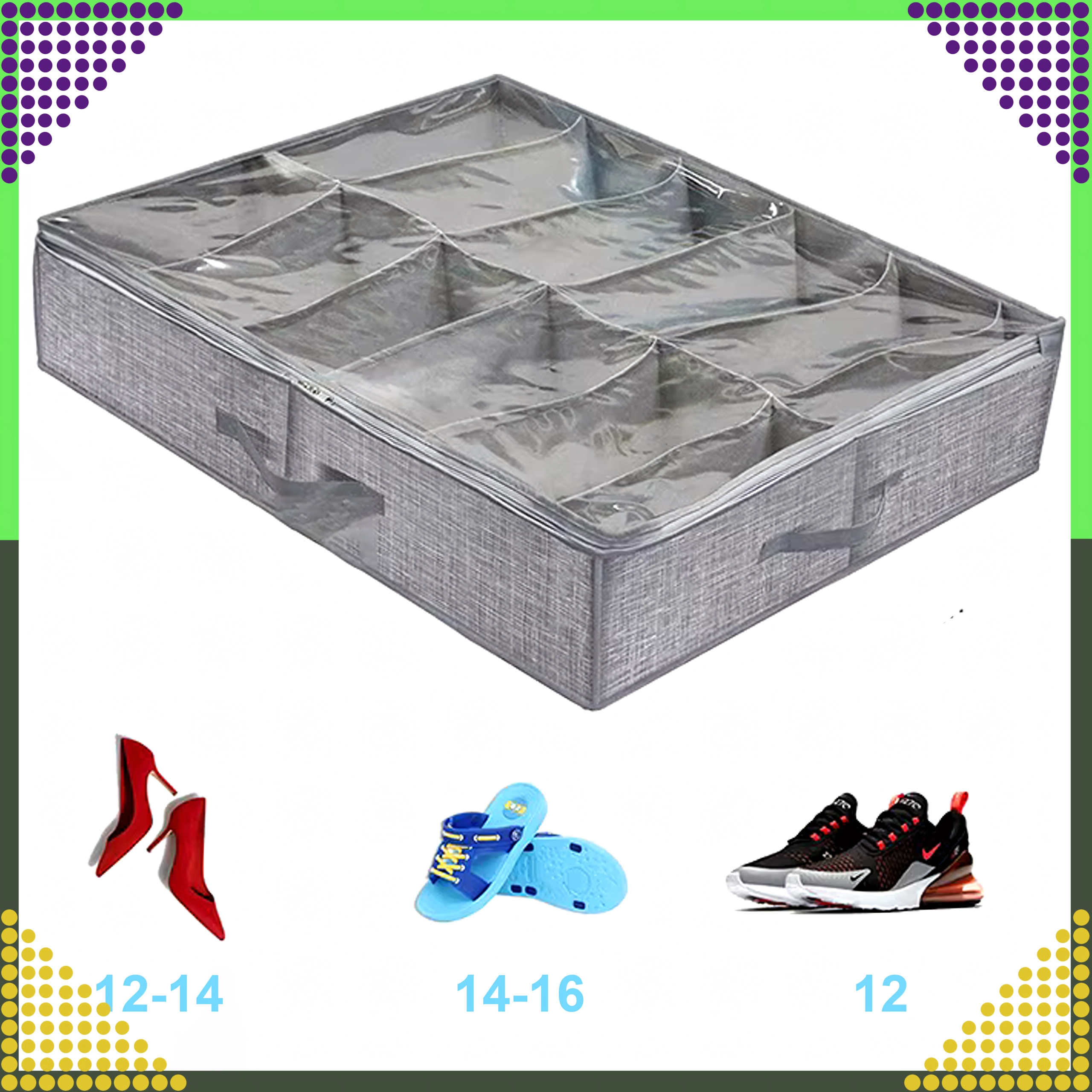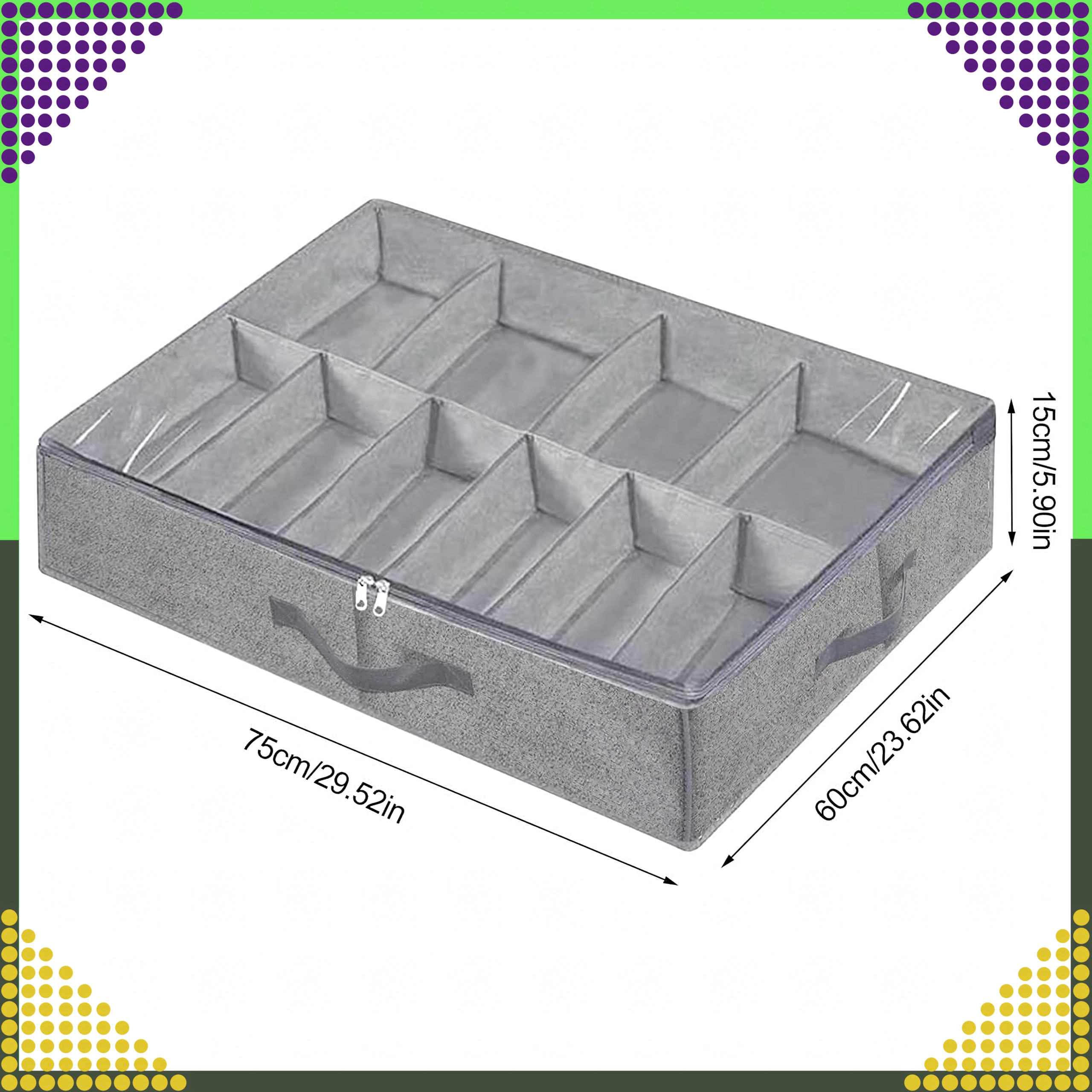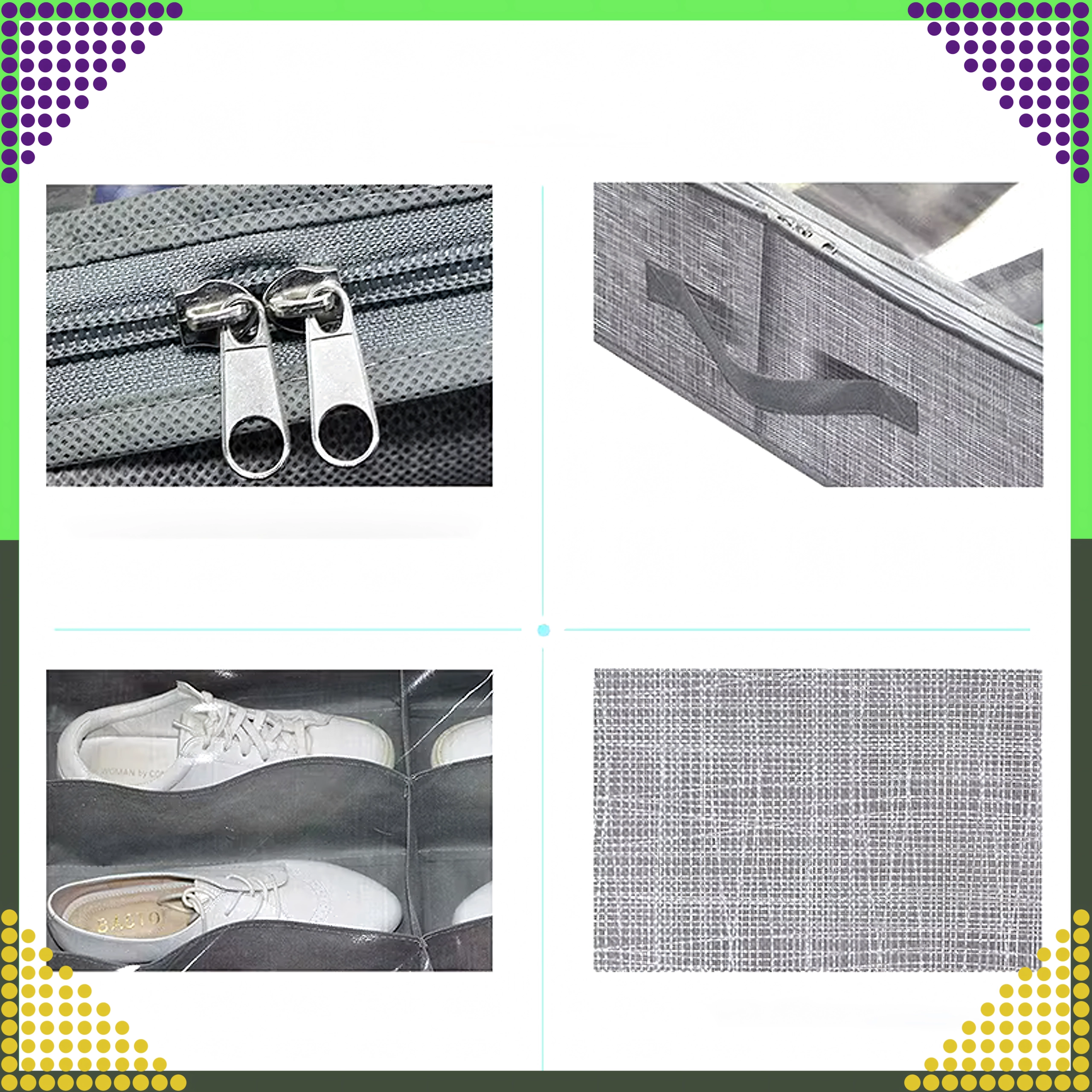 Sivi organizator za čevlje pod posteljo je pametna rešitev, kako ohraniti obutev in dodatke čiste, zaščitene pred prahom in vedno pri roki. Zaradi nizkega profila zlahka zdrsne pod večino postelj, v omari pa zavzame minimalno prostora. Prozoren pokrov z zadrgo omogoča, da takoj vidite, kaj je v notranjosti, brez potrebe po odpiranju.
