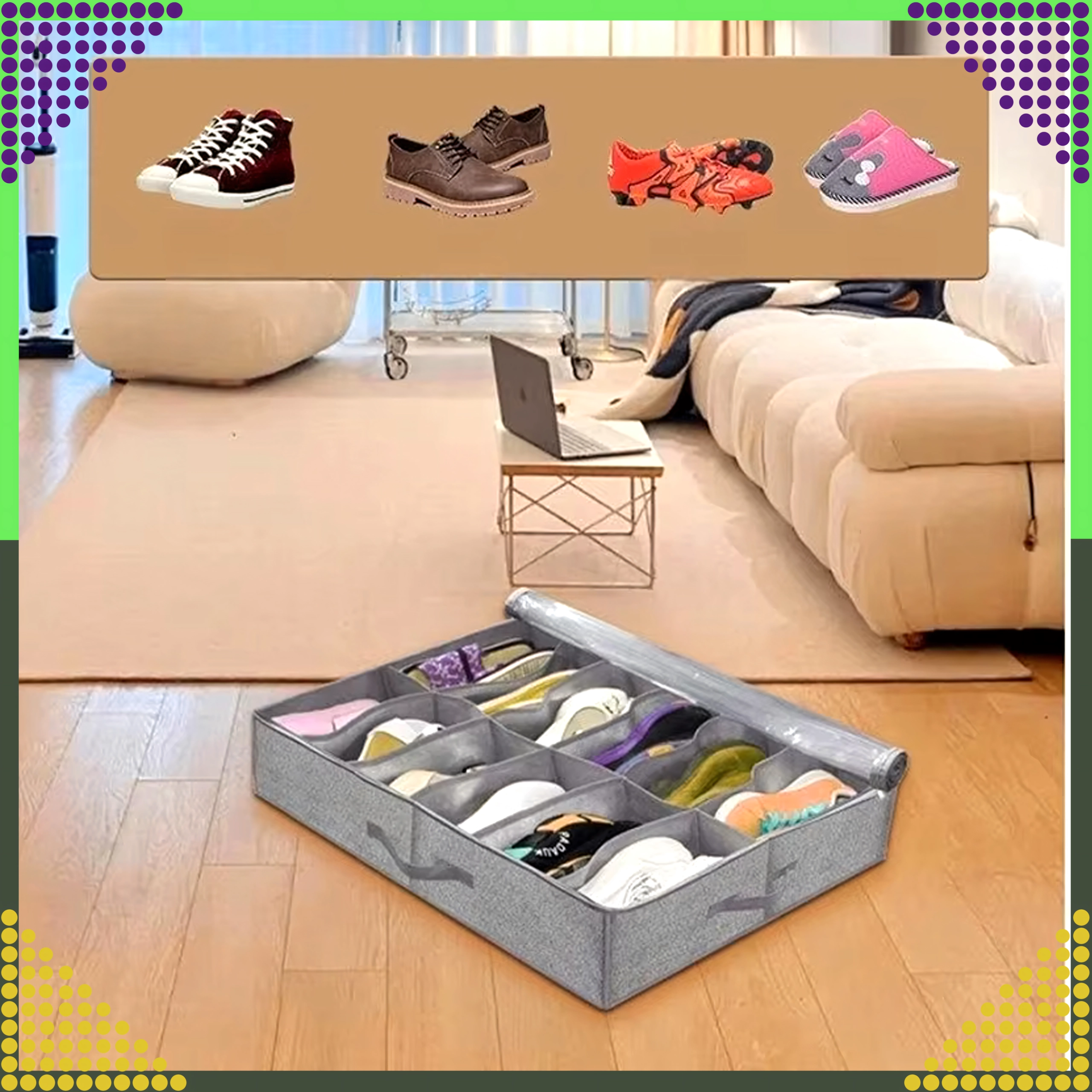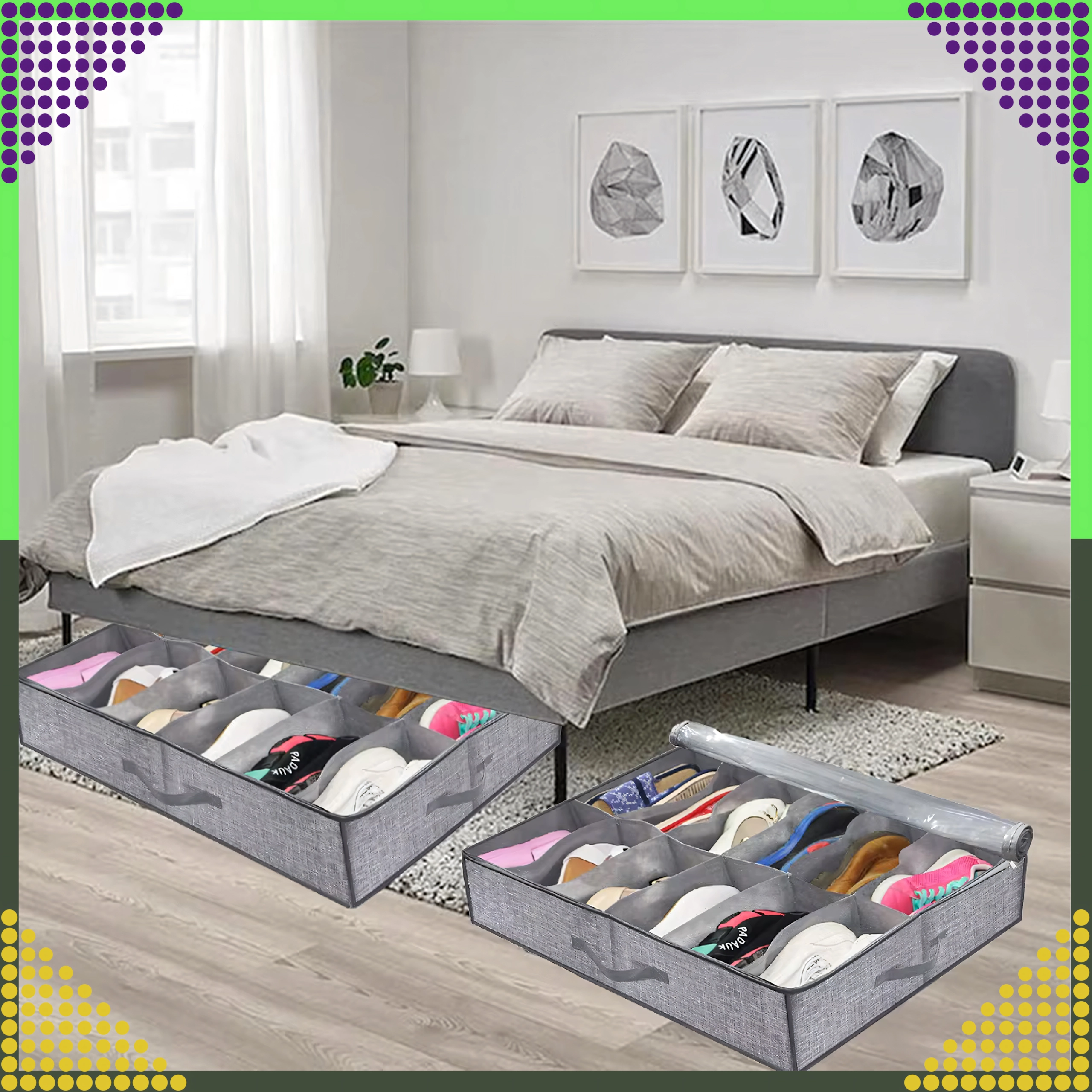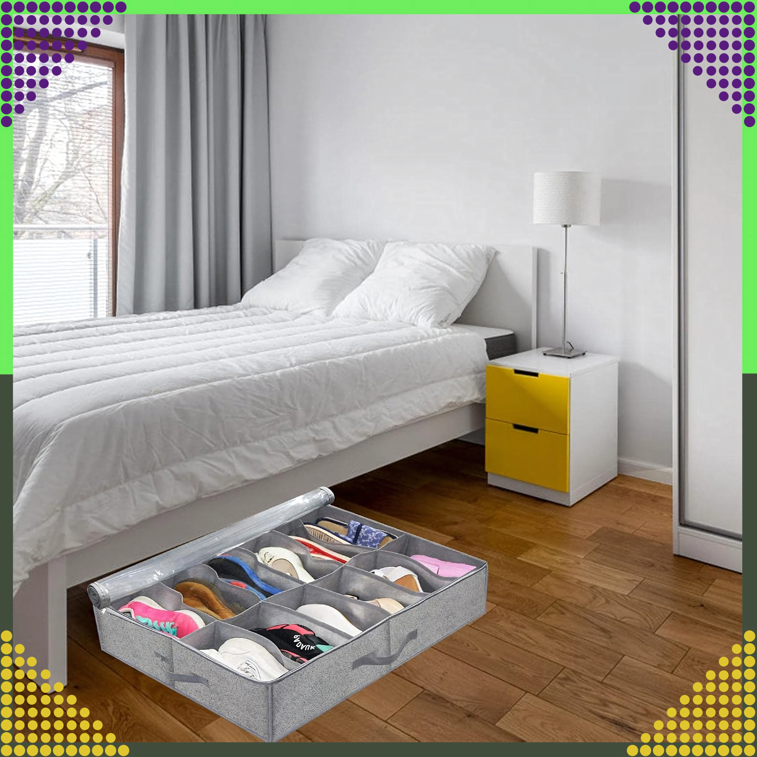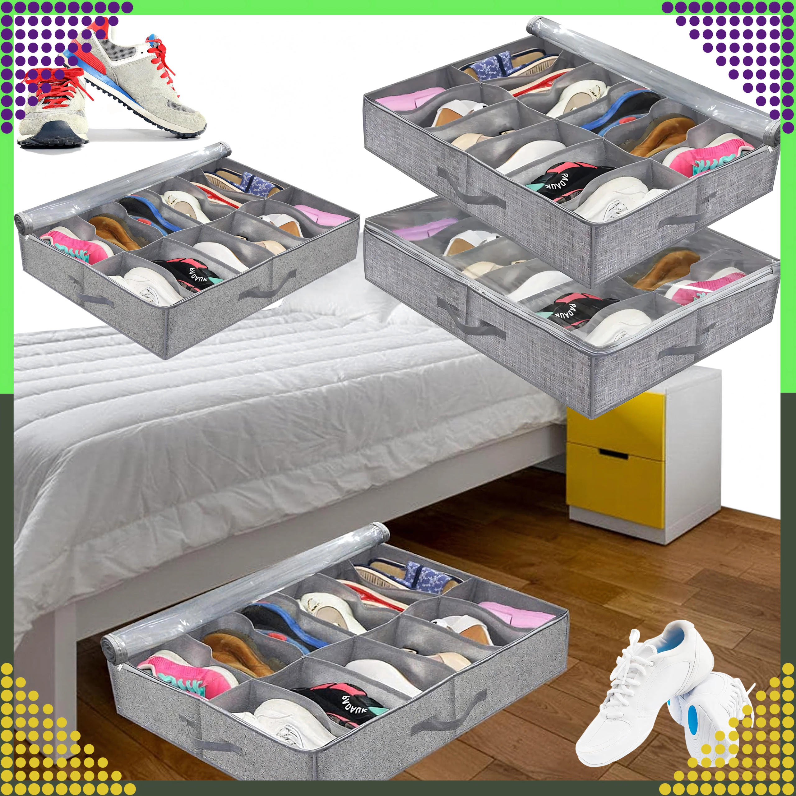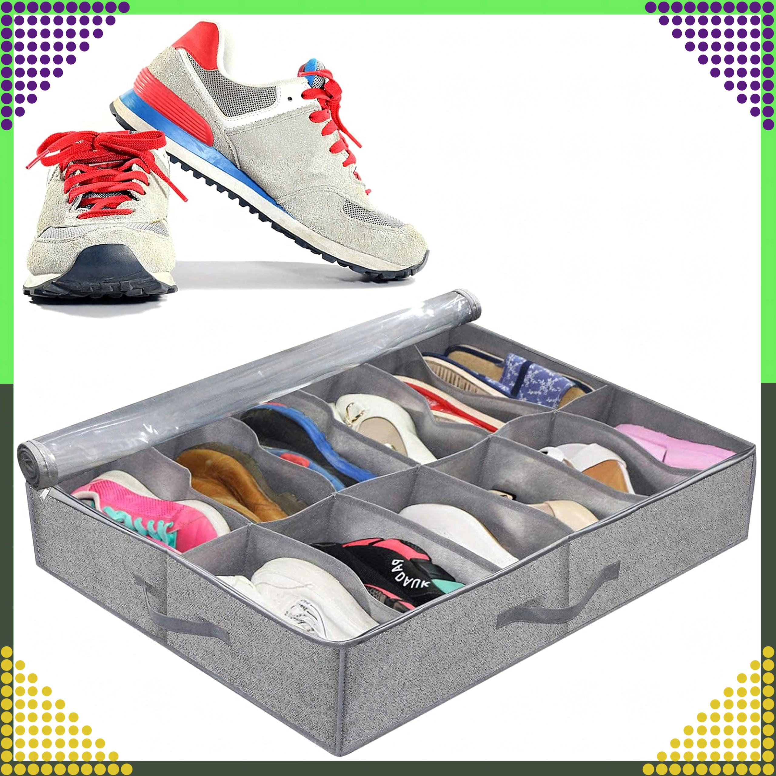 Sivi organizator za čevlje pod posteljo je pametna rešitev, kako ohraniti obutev in dodatke čiste, zaščitene pred prahom in vedno pri roki. Zaradi nizkega profila zlahka zdrsne pod večino postelj, v omari pa zavzame minimalno prostora. Prozoren pokrov z zadrgo omogoča, da takoj vidite, kaj je v notranjosti, brez potrebe po odpiranju.