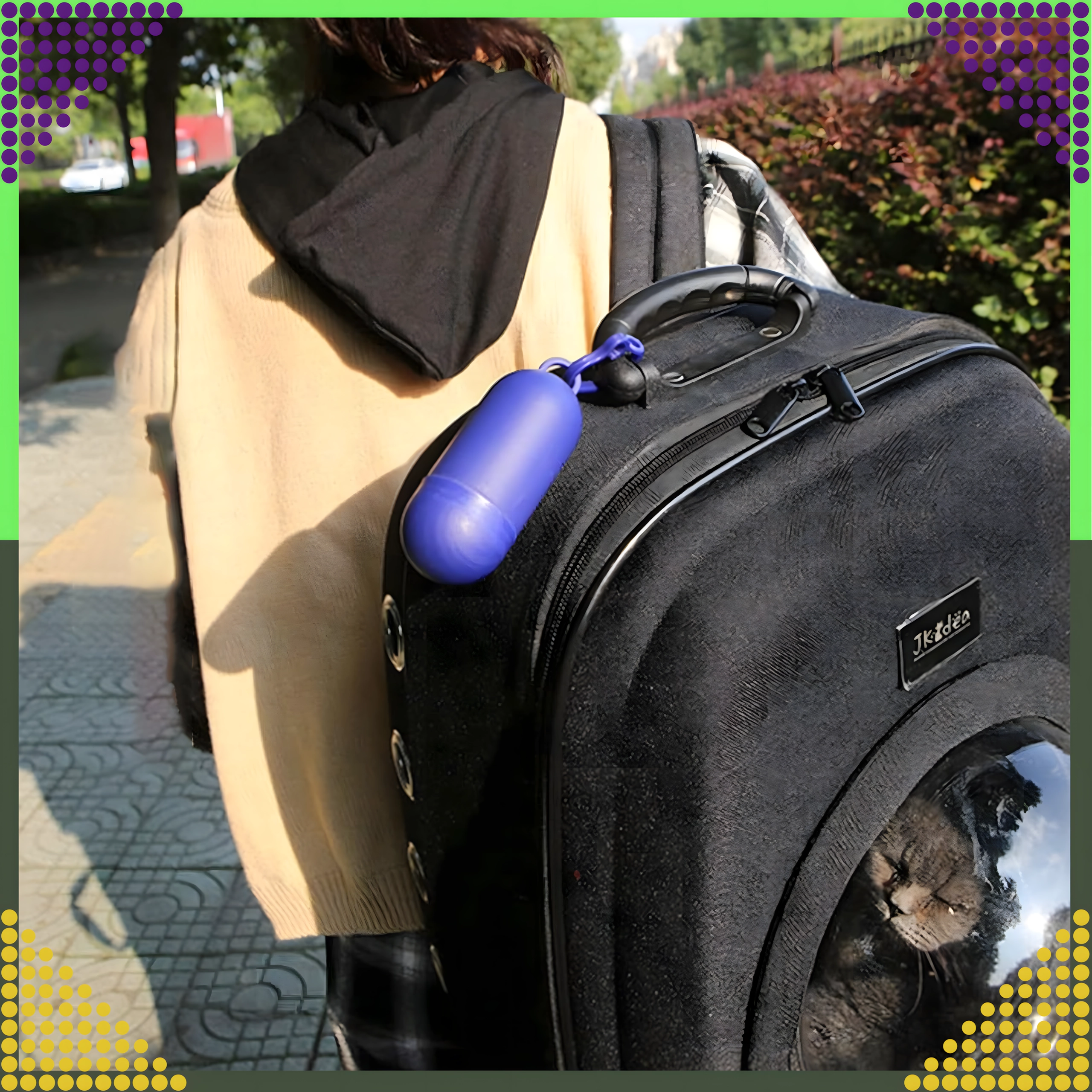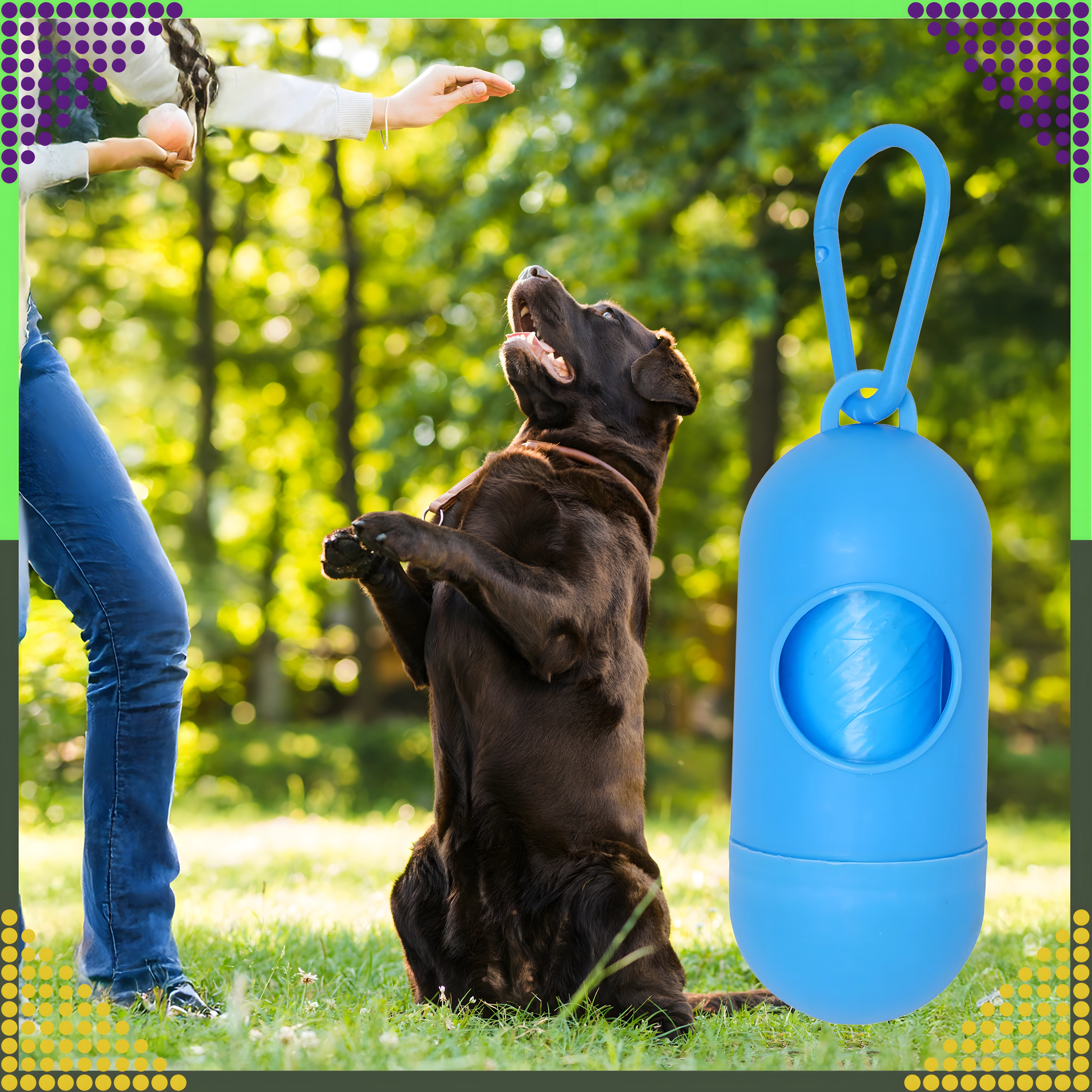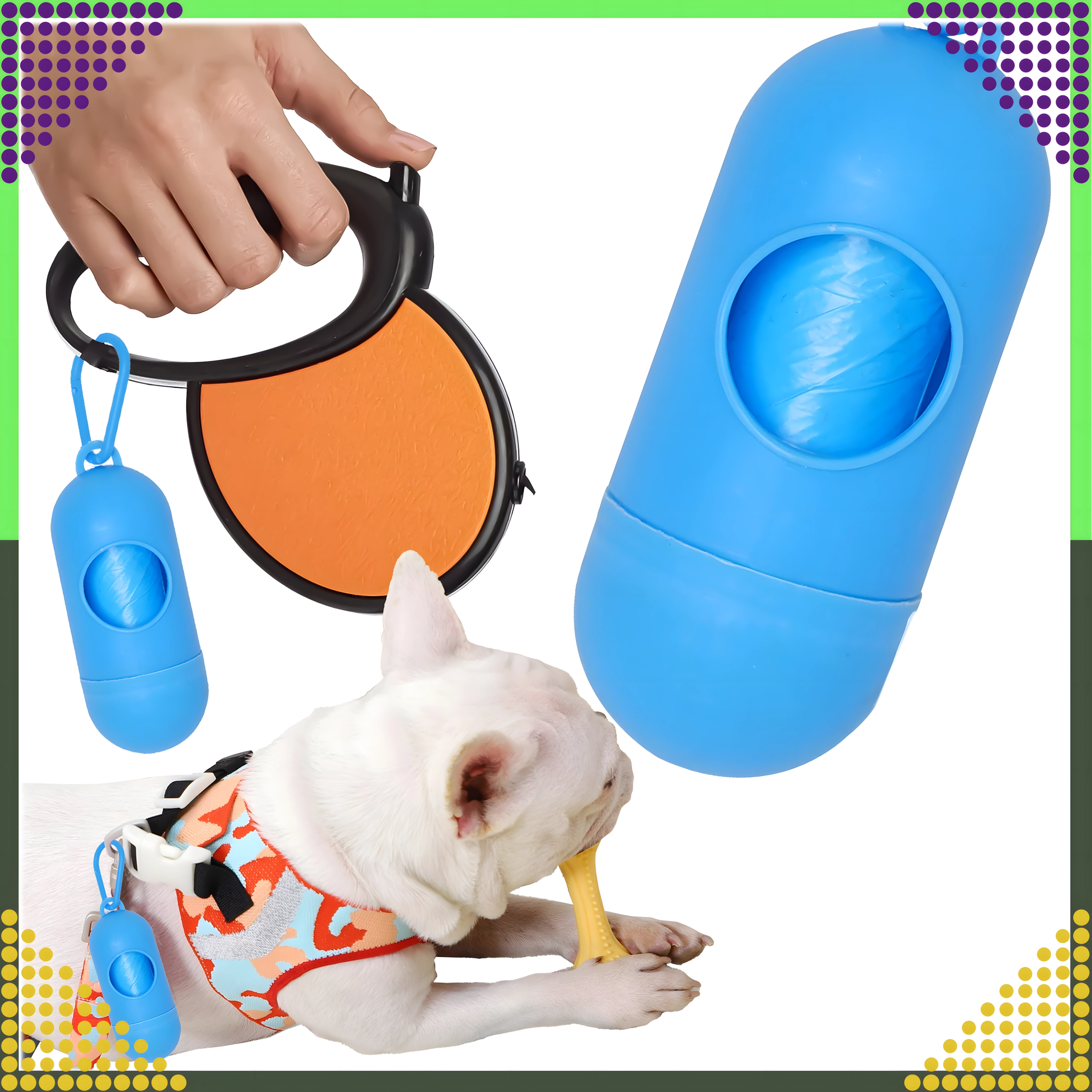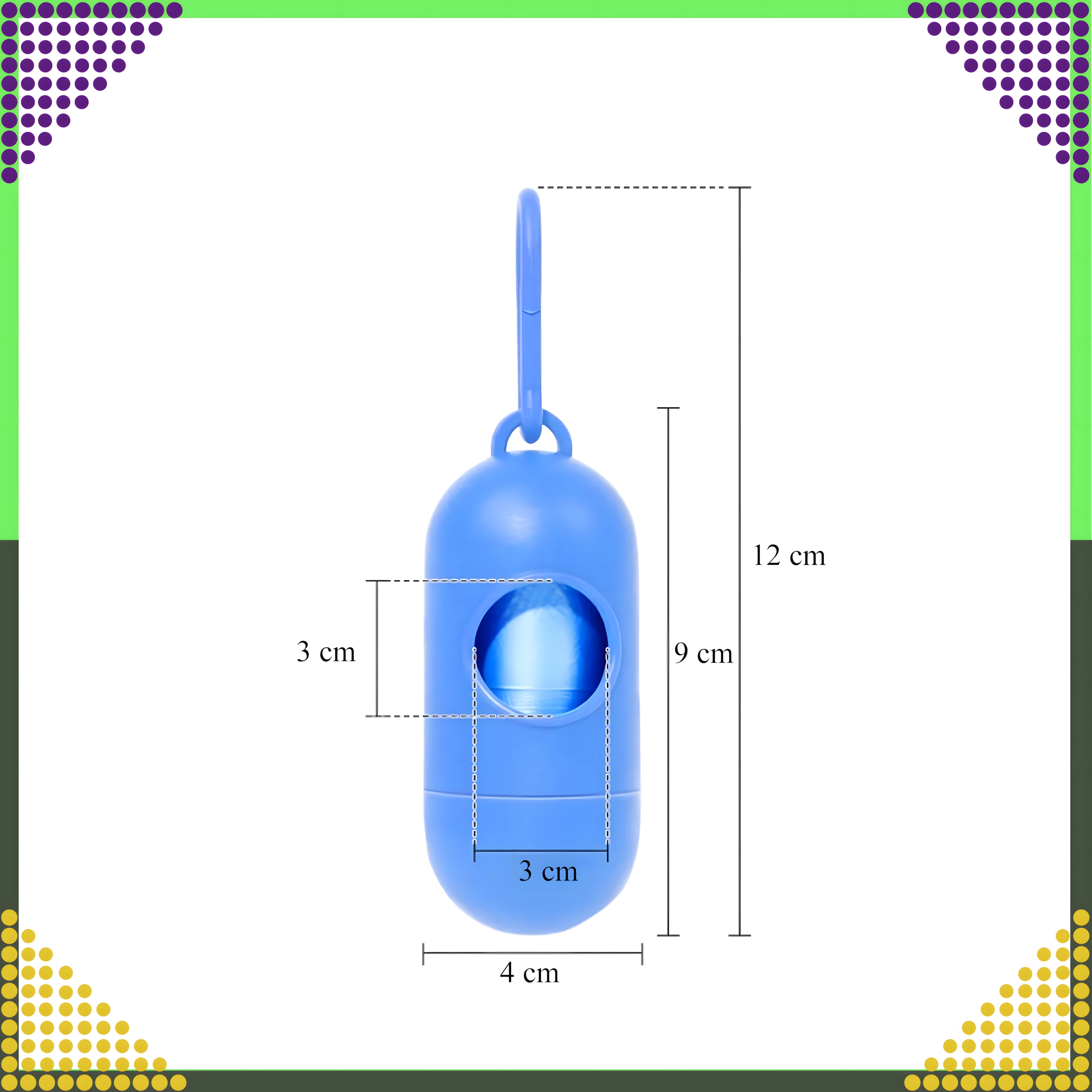 Univerzalna zasnova ustreza večini standardnih rolic z vrečkami. Praktična velikost in nizka teža zagotavljata, da lahko etui preprosto pripnete na povodec, torbo ali pas in ga imate vedno pri roki.