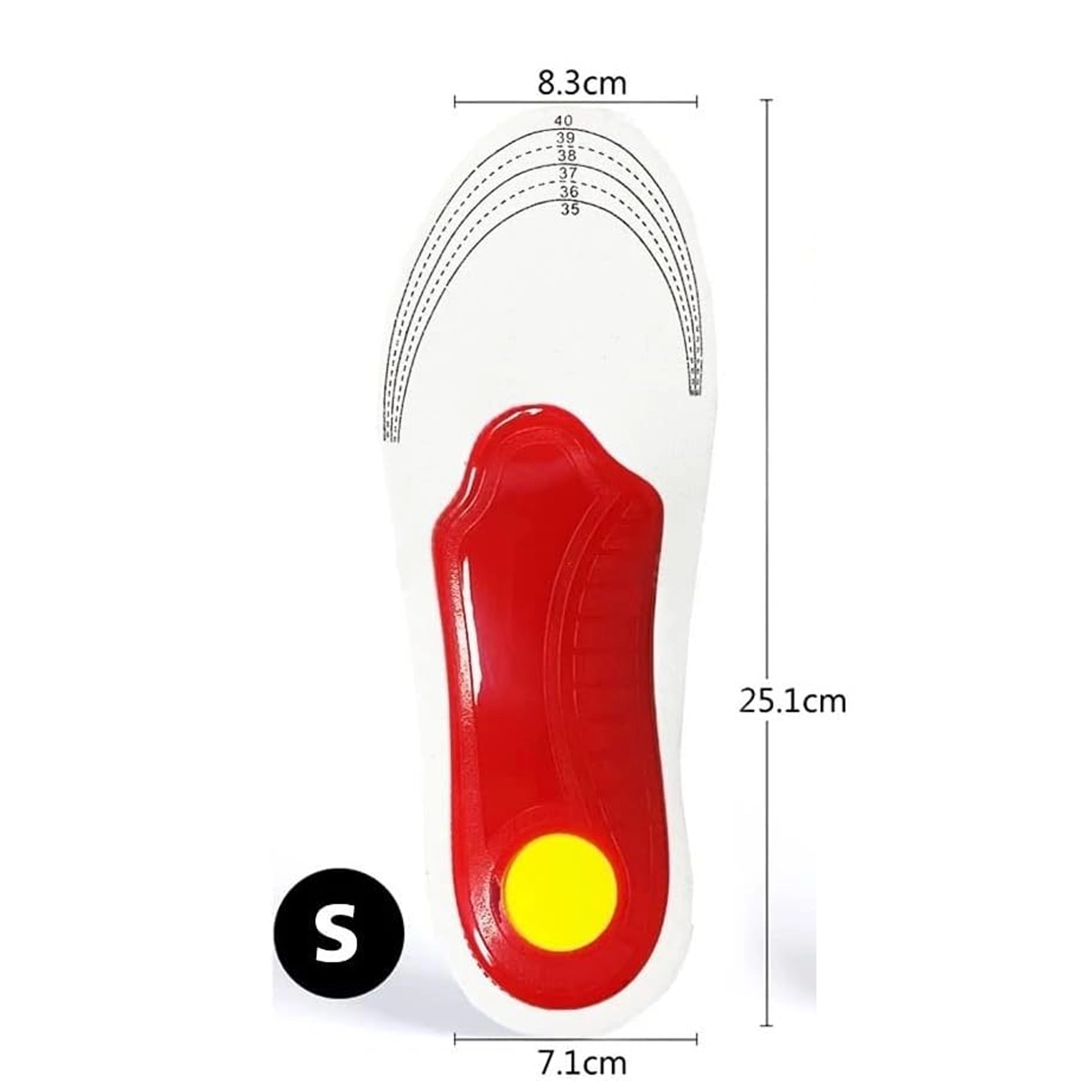 Zračna površina in možnost prirezovanja za natančno prilagoditev velikosti olajšata uporabo v vsakdanji obutvi – od dela prek prostega časa do športne hoje. Vložki velikosti S (35–40) so idealni za uporabnike, ki iščejo ciljano oporo loka, metatarzalno podporo in zanesljivo blaženje pete.