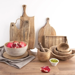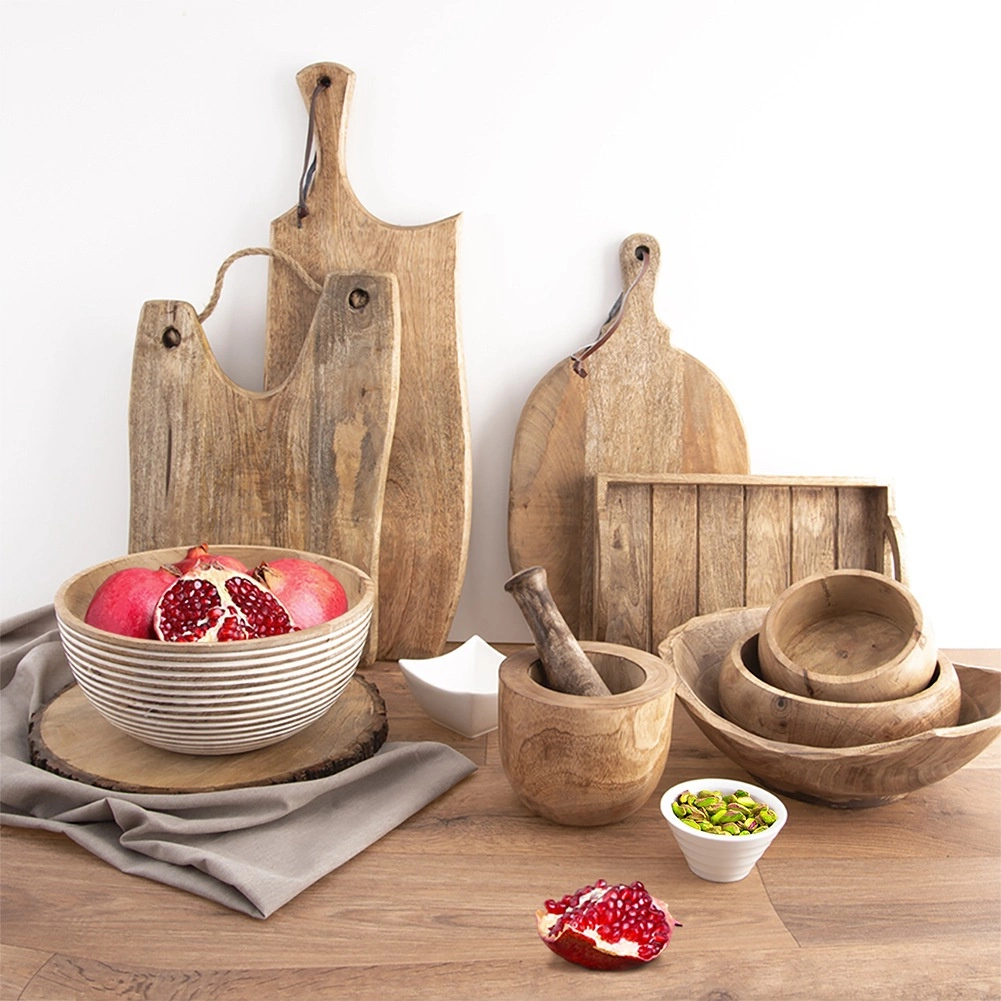 Eksotični les mangovca je trden, odporen na vlago in preprost za vzdrževanje. Vsaka skodela ima edinstveno teksturo in topel odtenek.