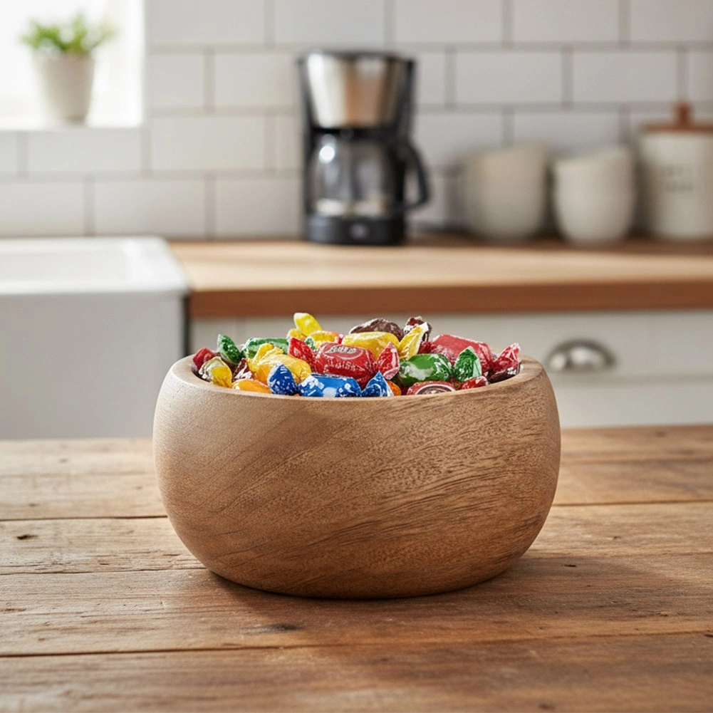 Ta skodela iz eksotičnega mangovega lesa navduši z naravno teksturo in čvrsto izdelavo. Idealna je za vsakodnevno uporabo – od oreškov in suhega sadja do solat ali prilog. Zaradi odpornosti lesa na vlago je odlična tudi za serviranje toplih in hladnih jedi.