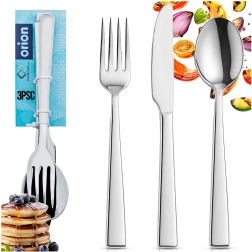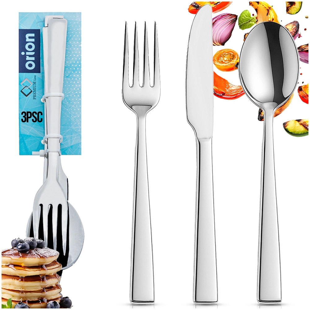 Kaj dobite: osnovni pribor za eno osebo – žlico, vilico in nož – v enotnem, elegantnem dizajnu. Pribor je prijetno uravnotežen, dobro leži v roki in zahvaljujoč trajnemu materialu zanesljivo služi pri vsakodnevni uporabi v gospodinjstvu ali manjši gastronomiji.