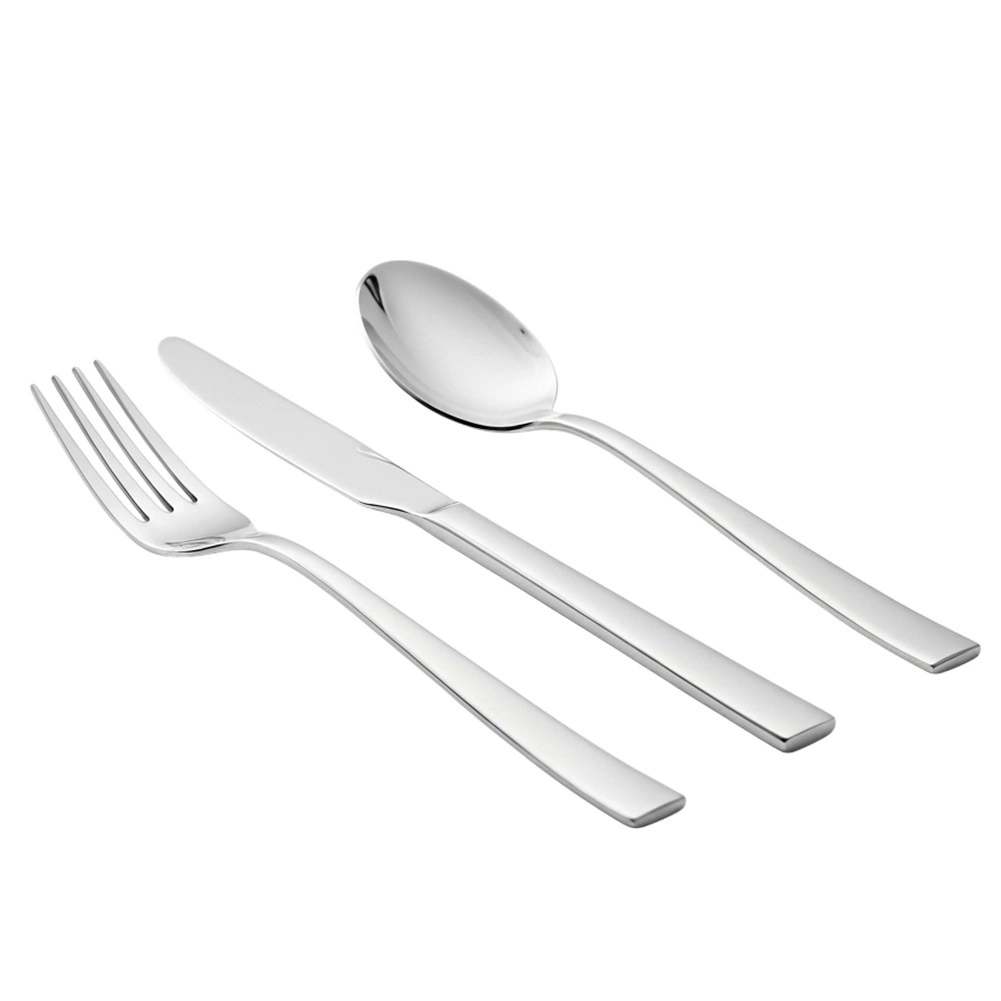 Tridelni set pribora je odlična izbira za vsakodnevno obedovanje in slavnostne priložnosti. Minimalistične linije in sijoča izvedba se zlahka kombinirajo s klasično in moderno opremo jedilnice. Kakovostno nerjaveče jeklo zagotavlja dolgo življenjsko dobo in preprosto vzdrževanje.