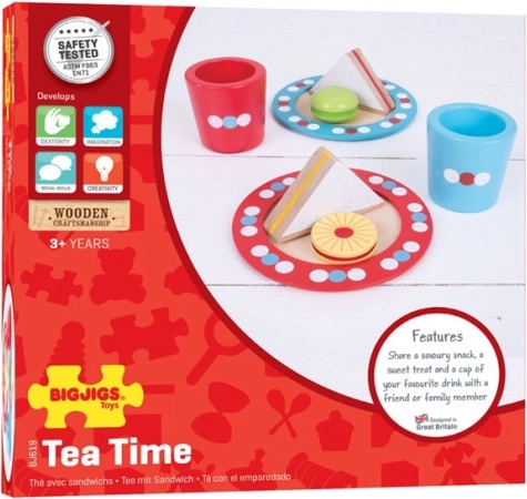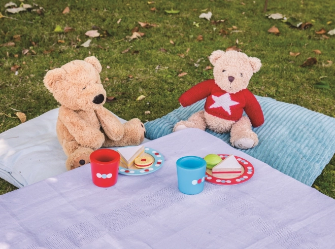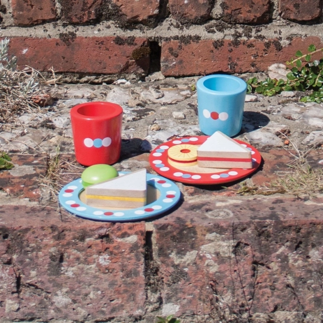 Ta prikupen leseni čajni komplet s pikami vabi k skupnemu »čaju ob petih«. Otroci vadijo postrežbo, vljudnost in deljenje, hkrati pa urijo prijem in koordinacijo rok. Barviti detajli in premišljene mere ga naredijo za priljubljen dodatek vsake otroške kuhinje.