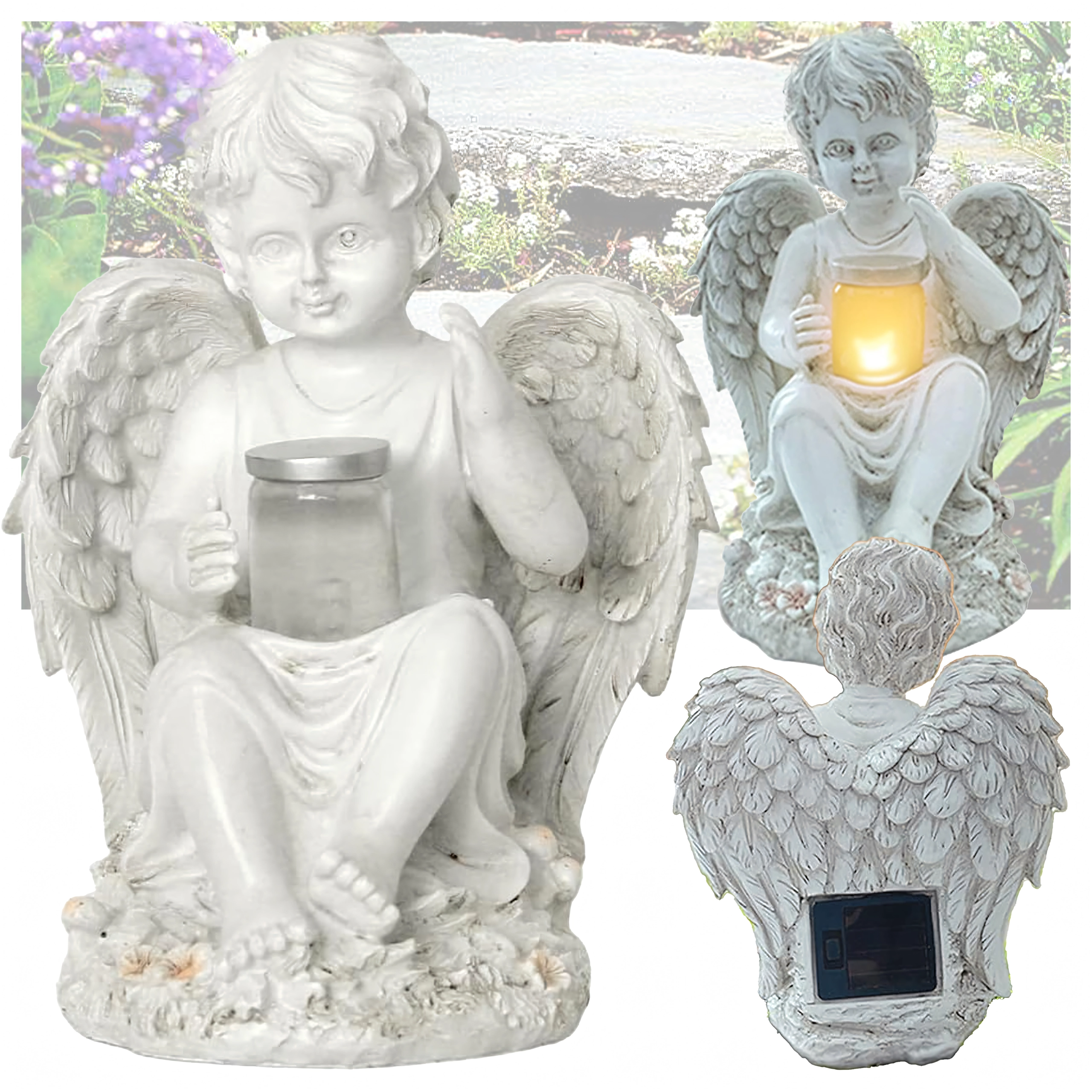 Ustvarite mirno in prijetno atmosfero z angelsko figurico s sončno LED osvetlitvijo. Dovršena krila, nežne linije in diskretna topla svetloba naredijo dekoracijo za eleganten dodatek za vrt, teraso, balkon in pieteten prostor.