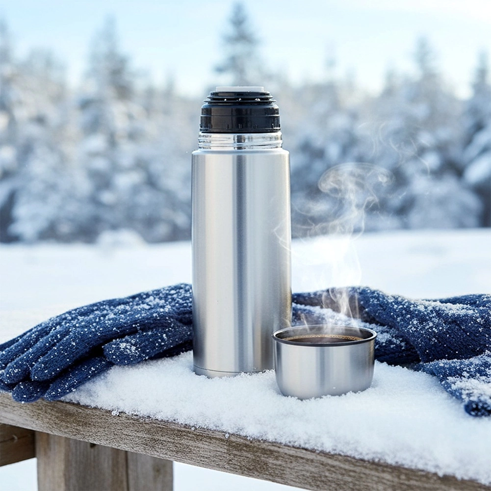 Pameten gumbni zapiralni mehanizem omogoča nalivanje brez popolnega popuščanja zamaška, zato pijača dlje ostane pri idealni temperaturi. Pokrov hkrati služi kot praktična skodelica – popolno na potovanjih, sprehodih ali med aktivnostmi na prostem.