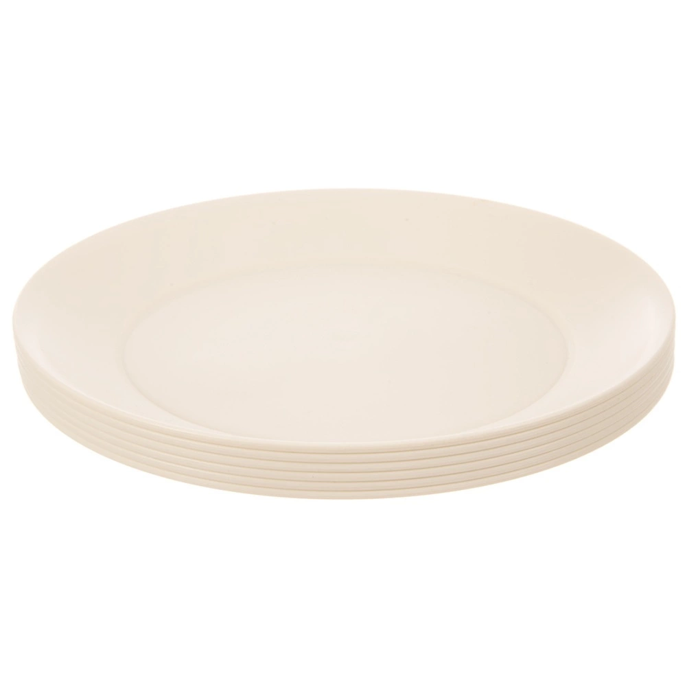 Lahek in trpežen komplet šestih desertnih krožnikov v kremni barvi za vsakodnevno uporabo doma in na prostem. Idealni za zajtrk, sladice in sadje. Krožniki s premerom 20,5 cm so iz kakovostne plastike, primerni za mikrovalovno pečico in pomivalni stroj, odlični za piknik, kampiranje in vrtne zabave.