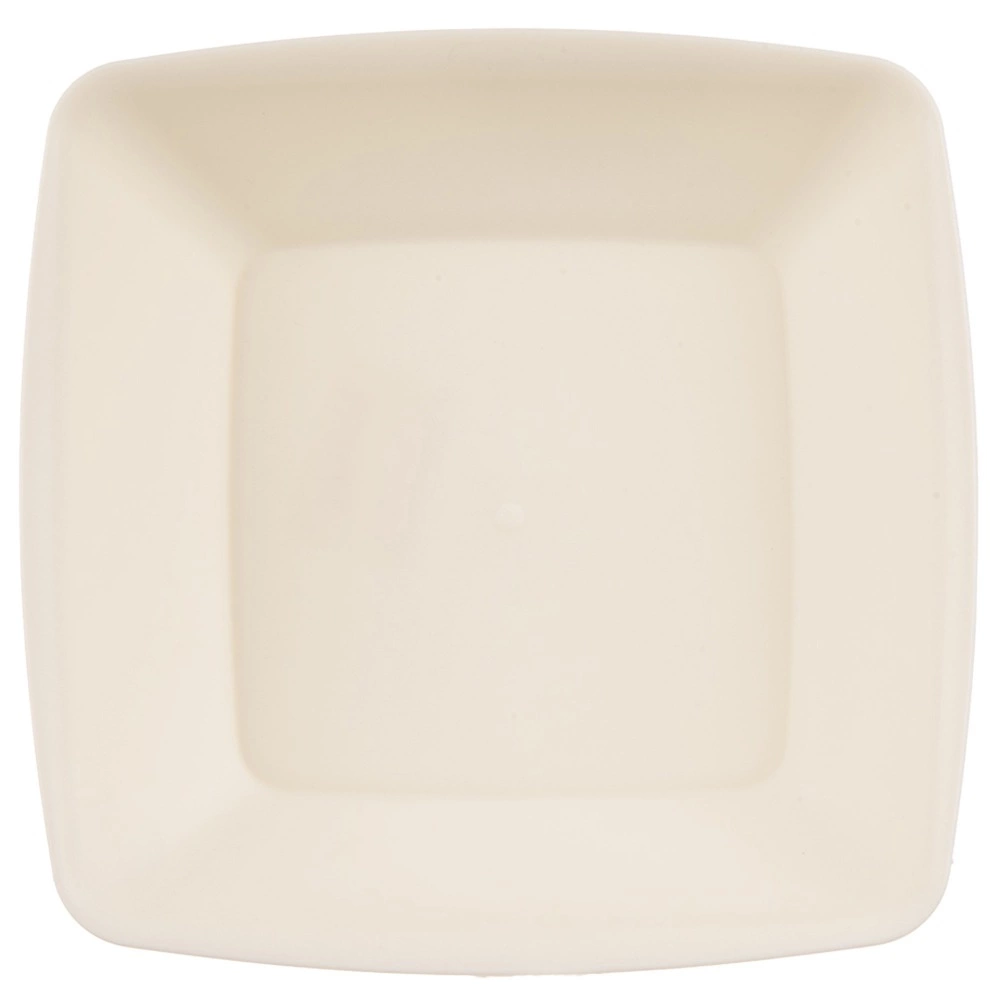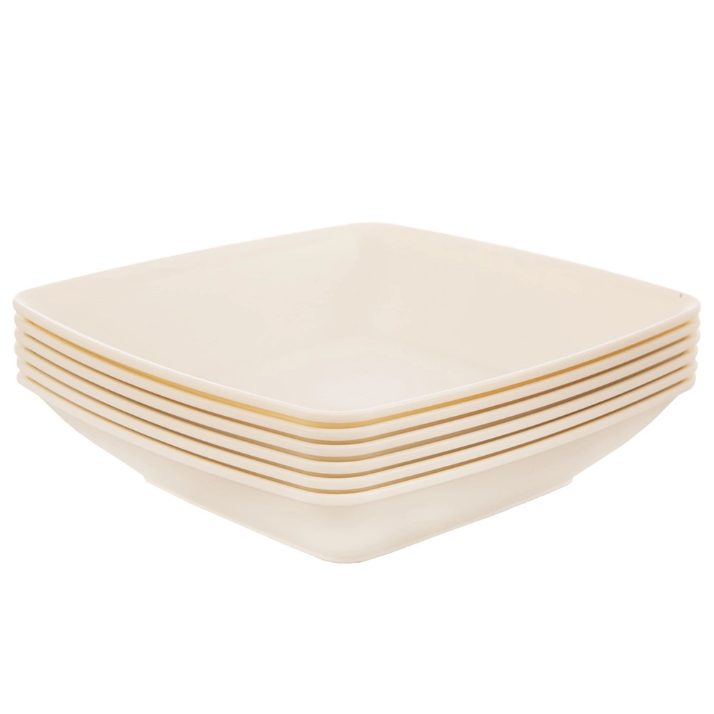 Kvadratni globoki krožniki v krem barvi se zlahka zlagajo drug na drugega, prihranijo prostor in so odporni na udarce ter padce.