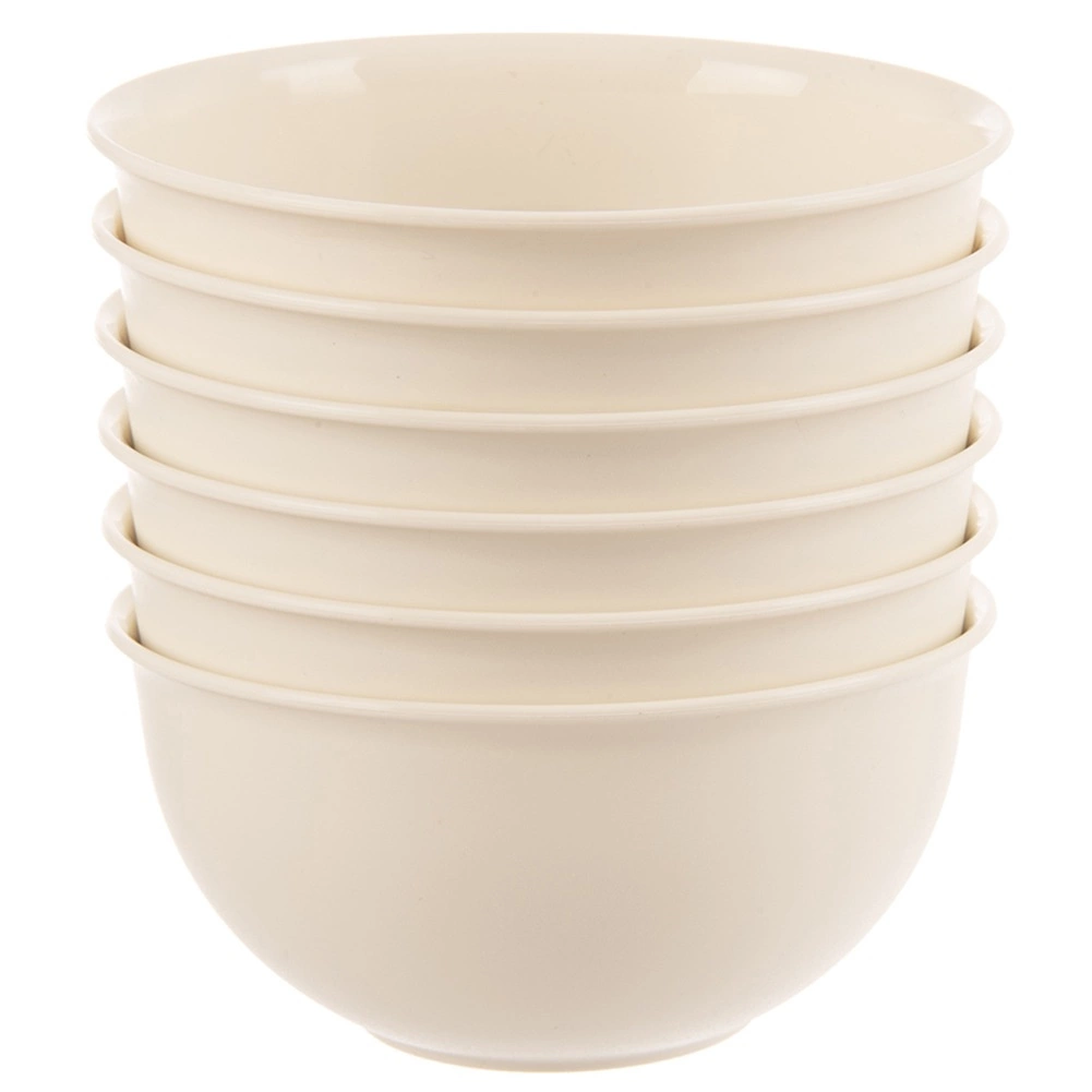 Komplet 6 plastičnih skled SANDY v elegantni krem barvi združuje vzdržljivost in nizko težo. Vsaka skleda meri 13 × 6 cm in ima prostornino 500 ml – idealna velikost za juhe, kosmiče, solate in manjše porcije sladic. Zahvaljujoč gladki površini se odlično čistijo, minimalističen dizajn pa se poda v vsako kuhinjo.