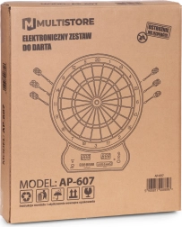 V paketu dobite 12 soft-tip puščic z rezervnimi konicami, montažne elemente in navodila s pravili. Dovolj je, da priključite na omrežje, izberete način in začnete tekmovati.