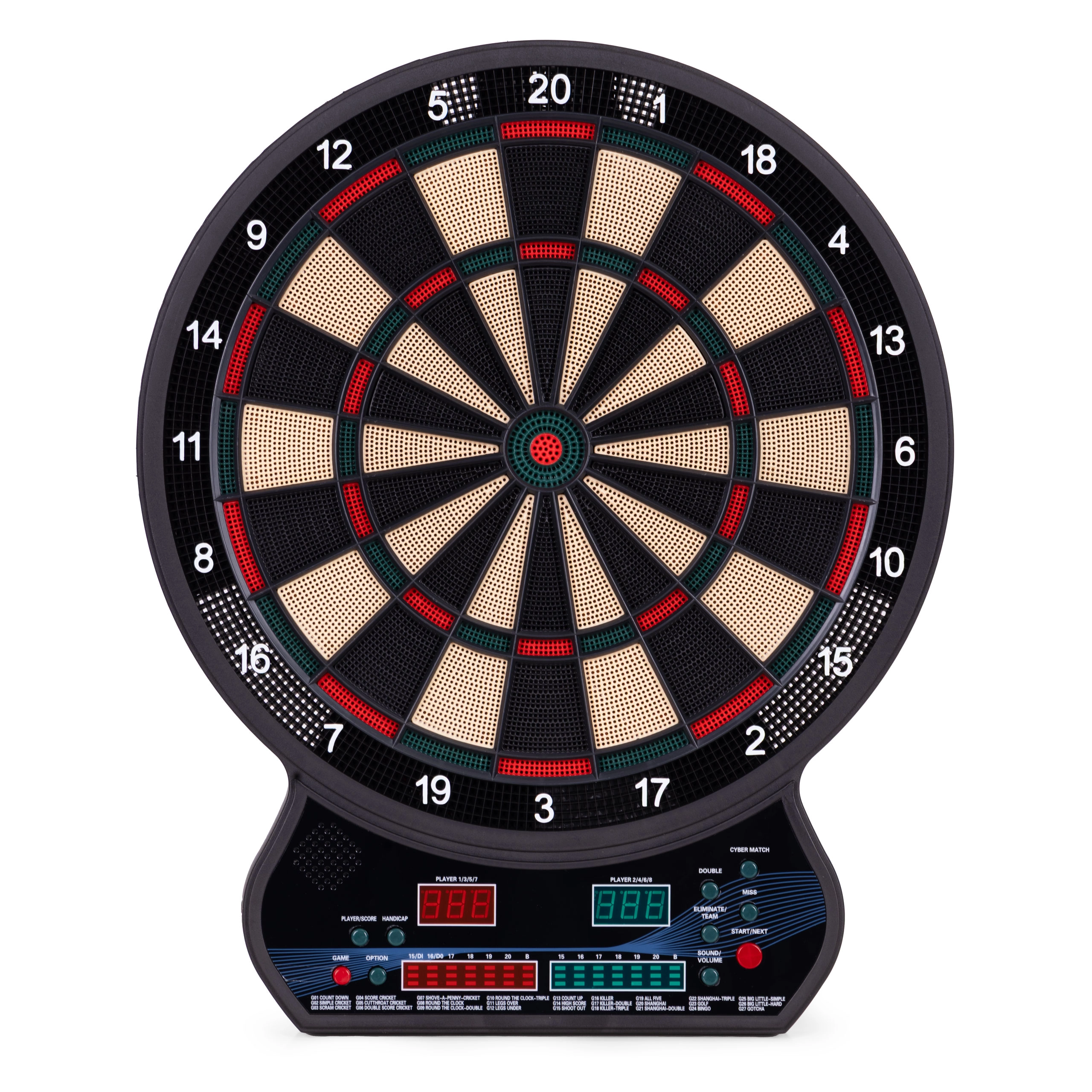 Izbirajte med 27 igrami in 202 različicama, vključno s priljubljenimi načini Count Down, Cricket, Gotcha, Round Clock in Shanghai. Napredni funkciji Cybermatch (igra proti računalniku) in Handicap (nastavitev težavnosti za vsakega igralca posebej) razširjata možnosti za začetnike in izkušene. 8-stopenjska nastavitev glasnosti in samodejno uspavanje po 10 minutah varčujeta energijo in skrbita za zbranost.