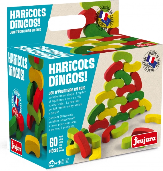 Jeujura barvni fižolčki so domiselna in zabavna lesena igra, ki preizkusi spretnost malih in velikih. Cilj je zlagati fižolčke enega na drugega tako, da je vsak na novo položen drugačne barve kot par pod njim. Preprosta pravila, a presenetljivo napeta igra za vso družino.