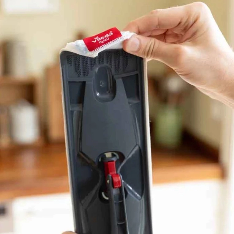 Prevleka se enostavno namesti na osnovo mopa in med čiščenjem trdno drži. Združljiva izključno z mopom Vileda H2Pro.