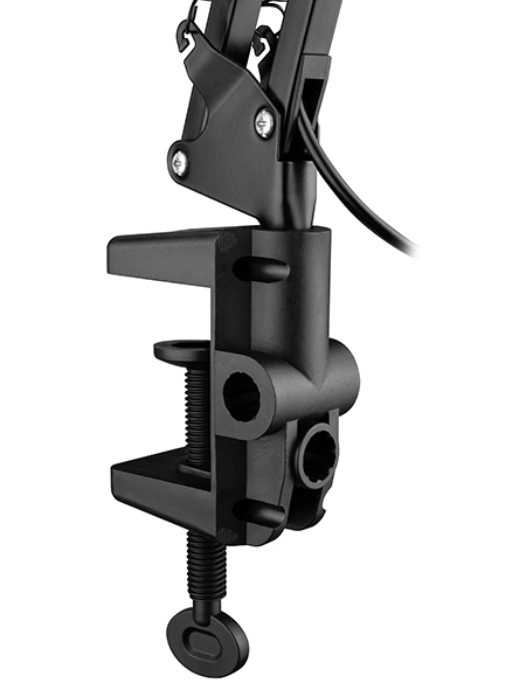 Robustna konstrukcija iz kovine in ABS zagotavlja dolgo življenjsko dobo. Stabilen sponkasti nosilec prihrani prostor na mizi in čvrsto drži tudi na manjših delovnih površinah. Stikalo na kablu olajša upravljanje, 150 cm napajalni kabel pa daje svobodo pri postavitvi.
