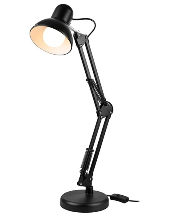 Vzmetni krak s tremi členi omogoča gladko nastavitev višine, dosega in naklona svetlobe – idealno za risanje, branje in podrobno delo.