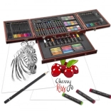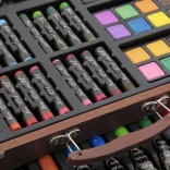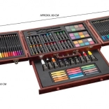 Popoln likovni komplet v elegantnem lesenem kovčku za začetnike in napredne ustvarjalce. Vsebuje širok izbor pripomočkov za risanje in slikanje, da vaše ideje oživijo. Najdete v njem akrilne barve, vodene barve, suhe in oljne pastele, barvne in grafitne svinčnike, čopiče ter druge nujne pripomočke – vse pregledno organizirano in enostavno prenosno.