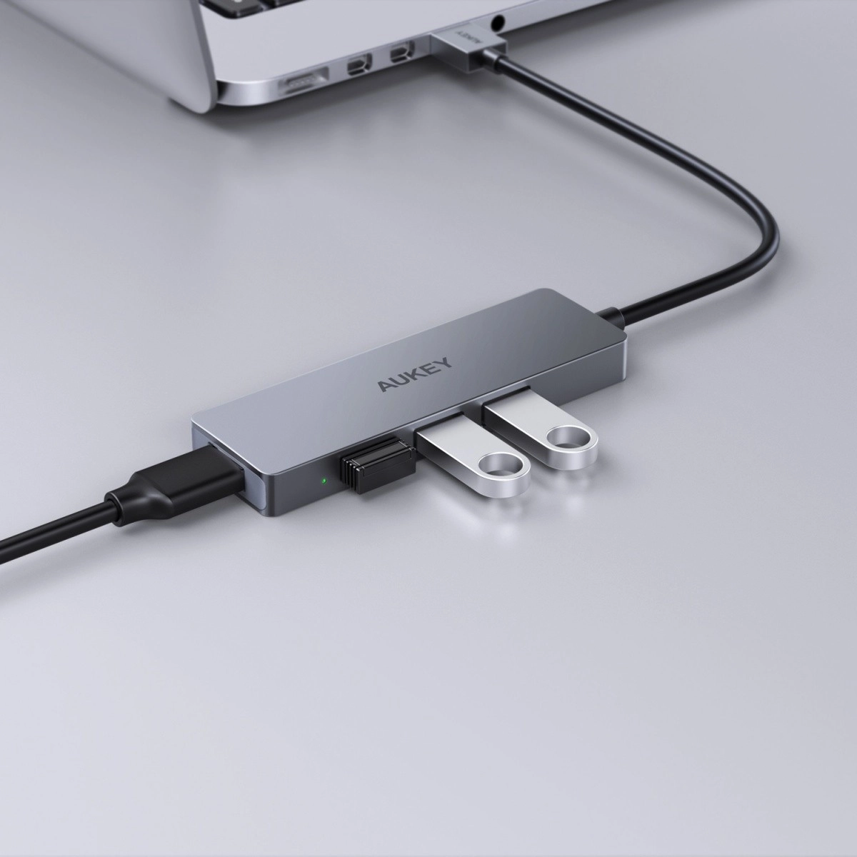 Slogoven in kompakten USB razdelilnik AUKEY spremeni ena vrata USB-A v štiri visoko hitra vrata za udoben priklop tipkovnice, miške, ključkov, zunanjih diskov in druge periferije. Zahvaljujoč vmesniku USB 3.0 dosega prenosne hitrosti do 5 Gb/s, zato varnostno kopiranje fotografij, delo z velikimi datotekami in prenos videov poteka v nekaj sekundah.
