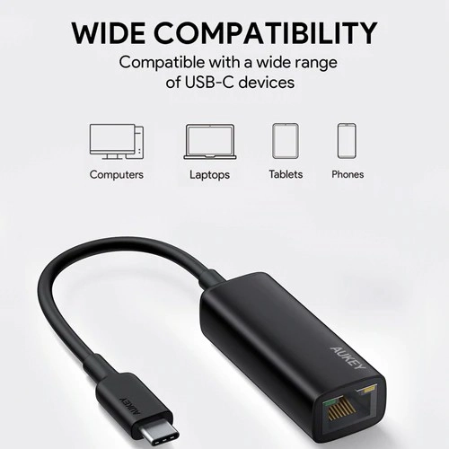 Adapter AUKEY USB‑C na RJ45 vašemu prenosniku, ultrabooku ali tablici doda zanesljiv gigabitni ethernet za hitro in stabilno povezavo. Zahvaljujoč USB‑C priključku in standardom IEEE je popolnoma združljiv z modernimi napravami in tudi starejšimi omrežji.