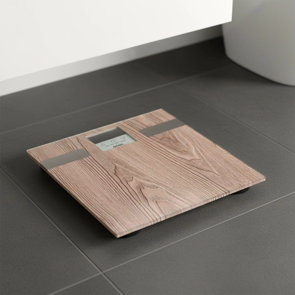 Elegantna tehtnica s površino v lesnem dekorju se odlično poda v moderno kopalnico, spalnico ali domačo telovadnico. Odporno steklo, nizek profil in protidrsne nogice zagotavljajo stabilnost in udobje pri uporabi. Natančni senzorji zagotavljajo zanesljive rezultate pri vsakem tehtanju.
