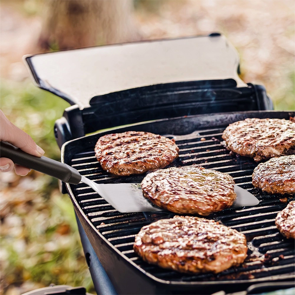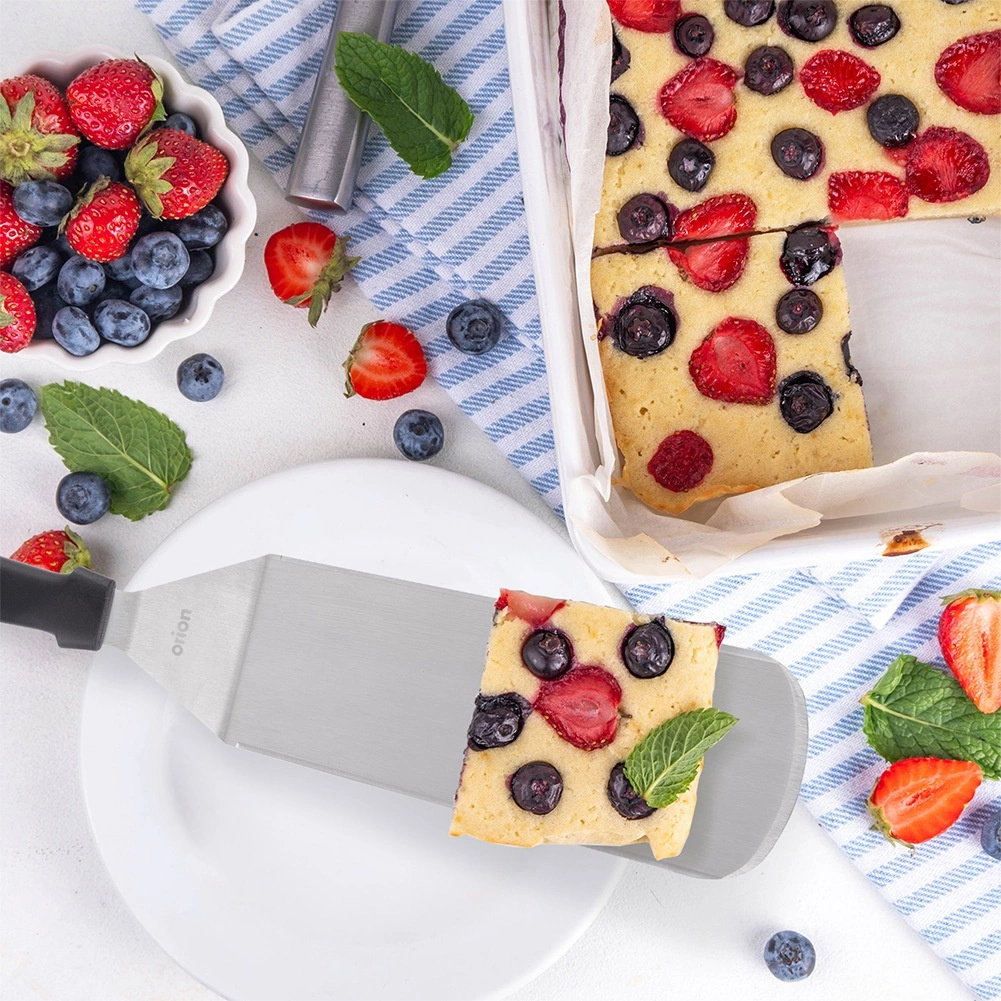 Robustno nerjavno rezilo z gladko površino zlahka privzdigne palačinke, burgerje ali ribe in ohrani cel kos skupaj.