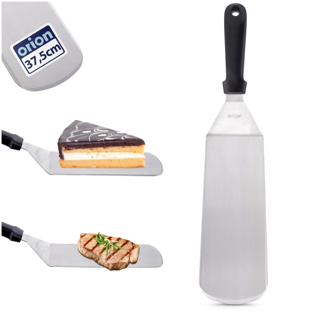 Praktična nerjavna lopatica 38 cm olajša vsakodnevno kuhanje. Široko in stabilno rezilo širine 7,5 cm z ostrimi robovi omogoča ne le preprosto obračanje, temveč tudi rezanje in deljenje neposredno pri postrežbi. Trpežni materiali zagotavljajo dolgo življenjsko dobo in udobno uporabo.