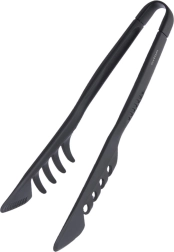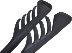 Univerzalne kuhinjske klešče BLACKLINE iz odpornega termoplasta so idealne za kuhanje in žar. Združujejo funkcijo klešč in lopatke, zato lahko z enim orodjem udobno zajemate, obračate in strežete hrano. So nežne do nelepljive posode, odporne na temperature do 200 °C in jih je mogoče prati v pomivalnem stroju.