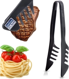 Klešče BLACKLINE dolžine 27,5 cm imajo širše, profilirane konce z zobci za zanesljiv oprijem – varno držijo špagete, zelenjavo, meso in tudi nežne sestavine brez zdrsa. Zahvaljujoč termoplastičnemu materialu so lahke, stabilne in odlično vodljive pri vsakodnevnem kuhanju in na žaru.