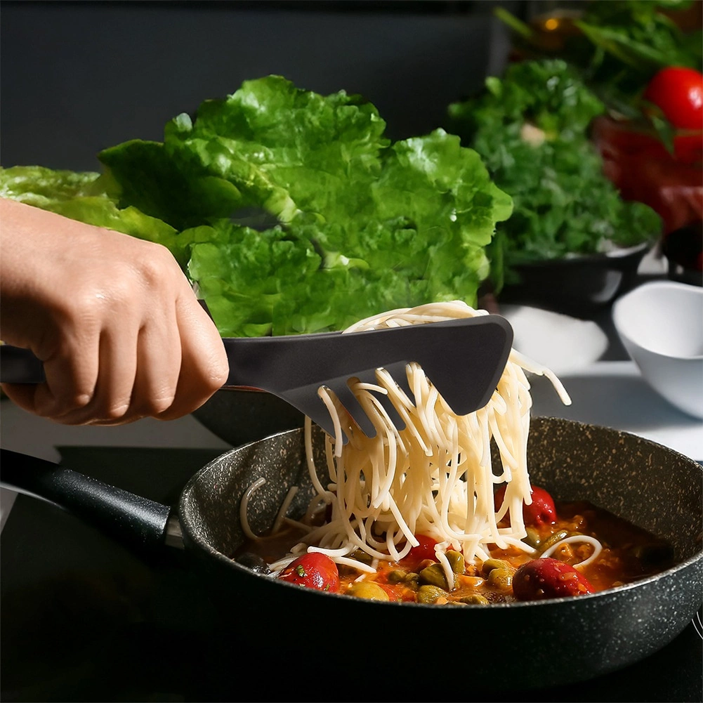Profilirani konici z zobci zanesljivo držita testenine, zelenjavo in meso. Odlično za zajemanje špagetov in obračanje krhkih sestavin brez poškodb.